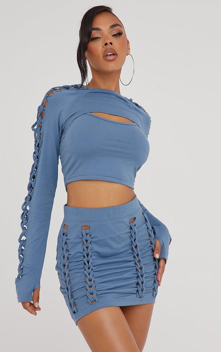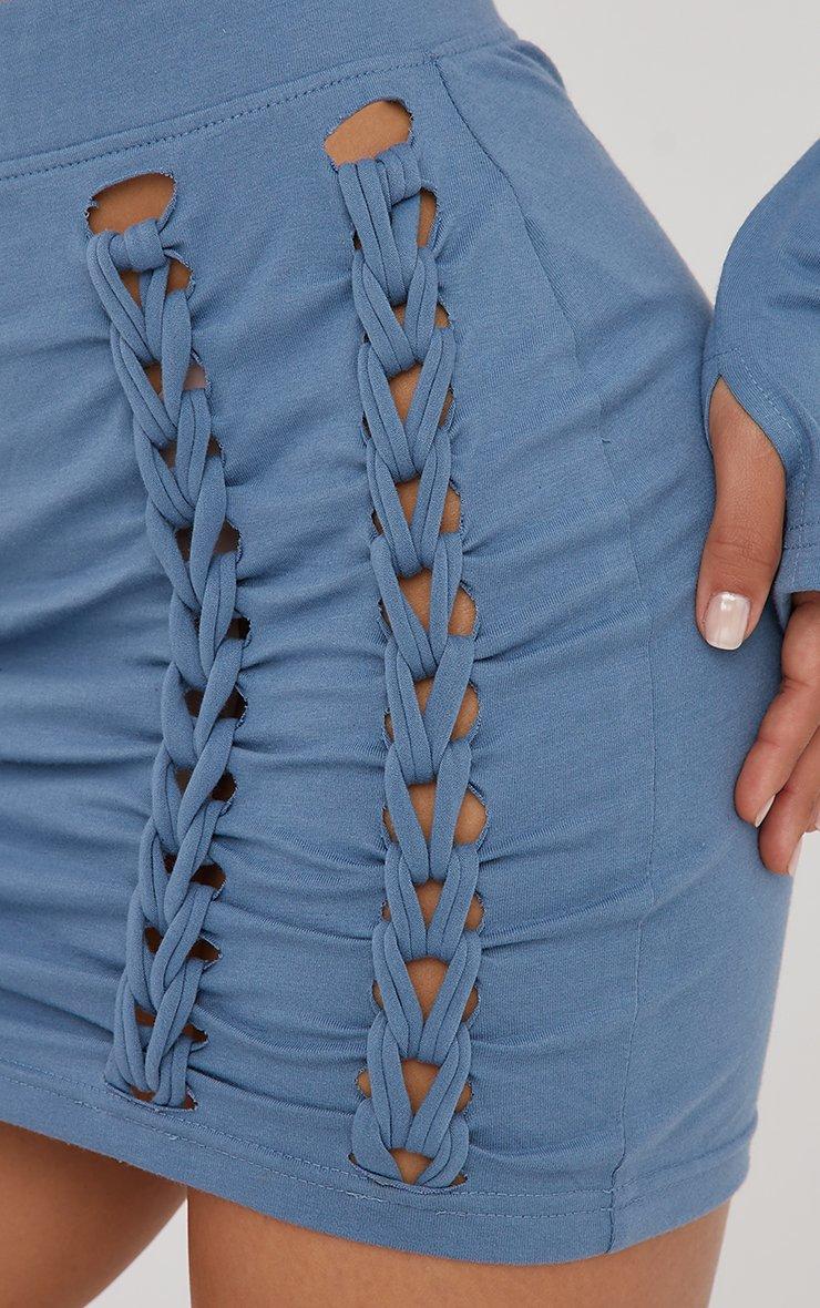 High Waist Ladder Detail Mini Bodycon Skirt In Blue