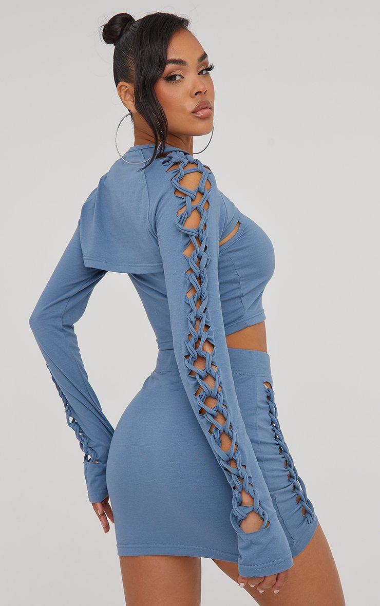 Say yes to this skirt doll. Featuring a blue material, a high waist, ladder detailing and a mini length.
