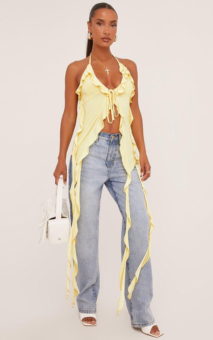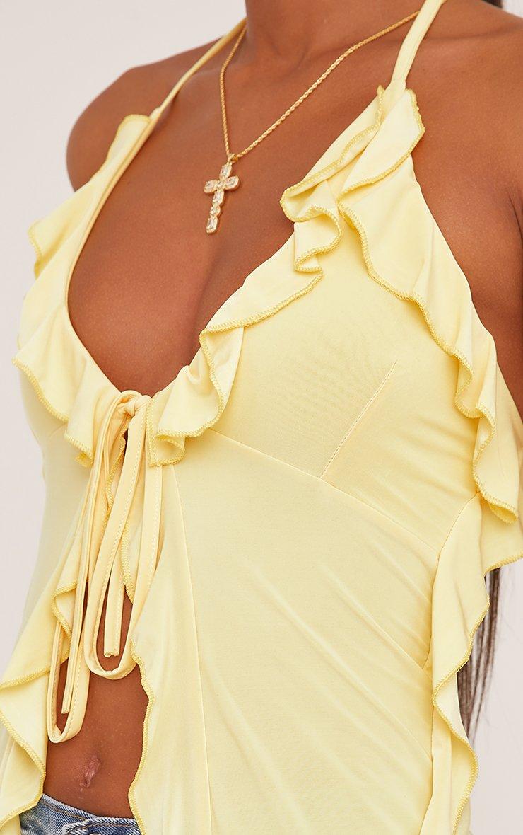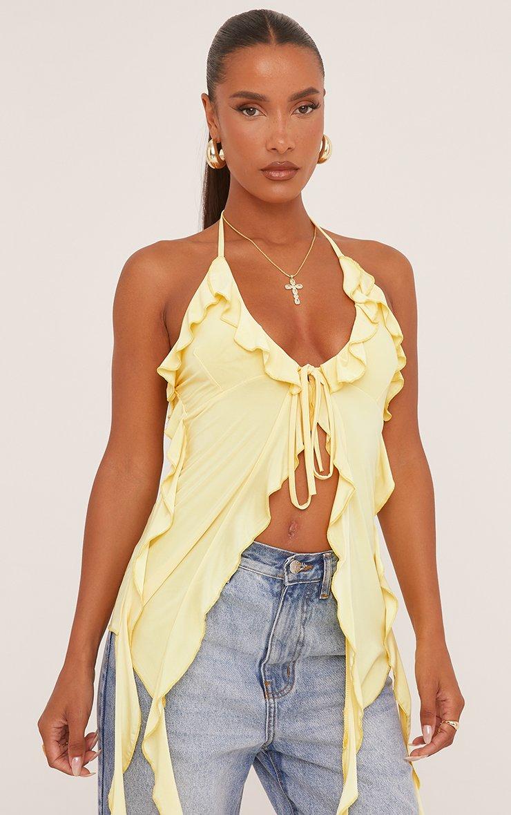 Plunge Halterneck Extreme Frill Detail Top In Yellow