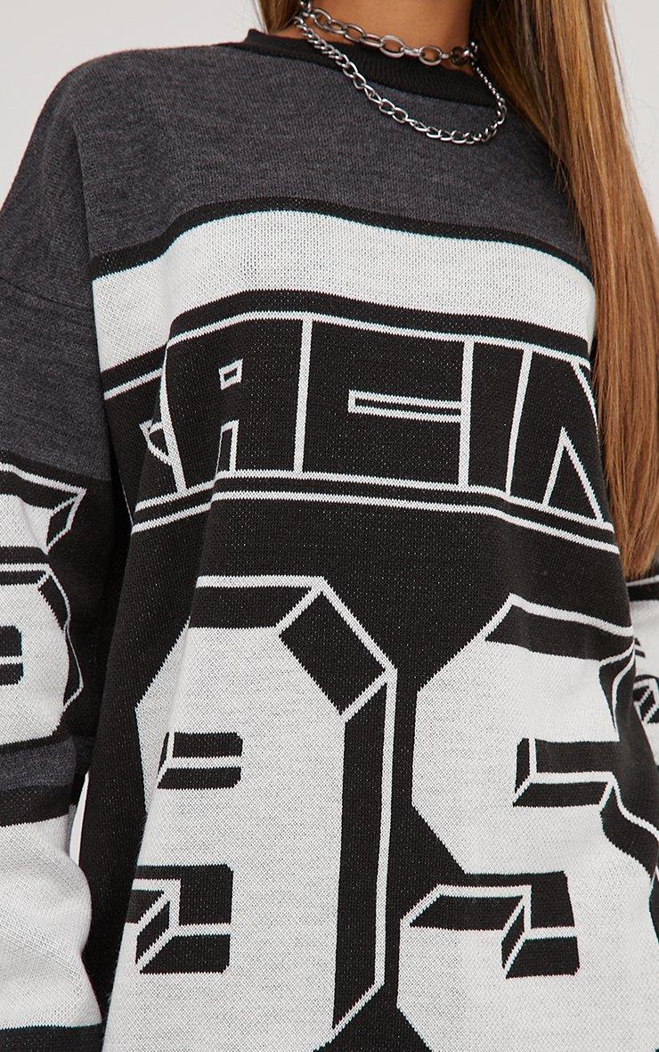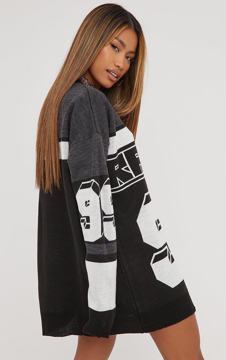 Long Sleeve Racer Detail Oversized Jumper Dress In Black Multi Knit