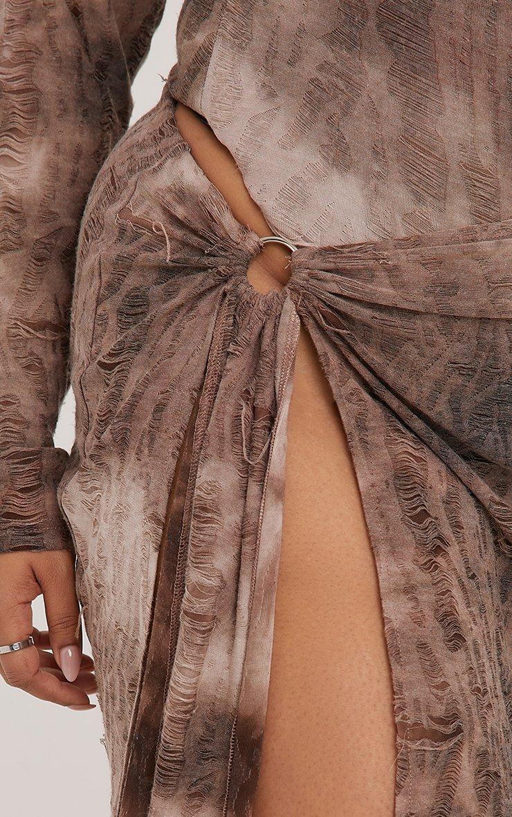 Plus High Waist Ring Drape Detail Split Leg Mini Skirt In Mauve Acid Wash Woven