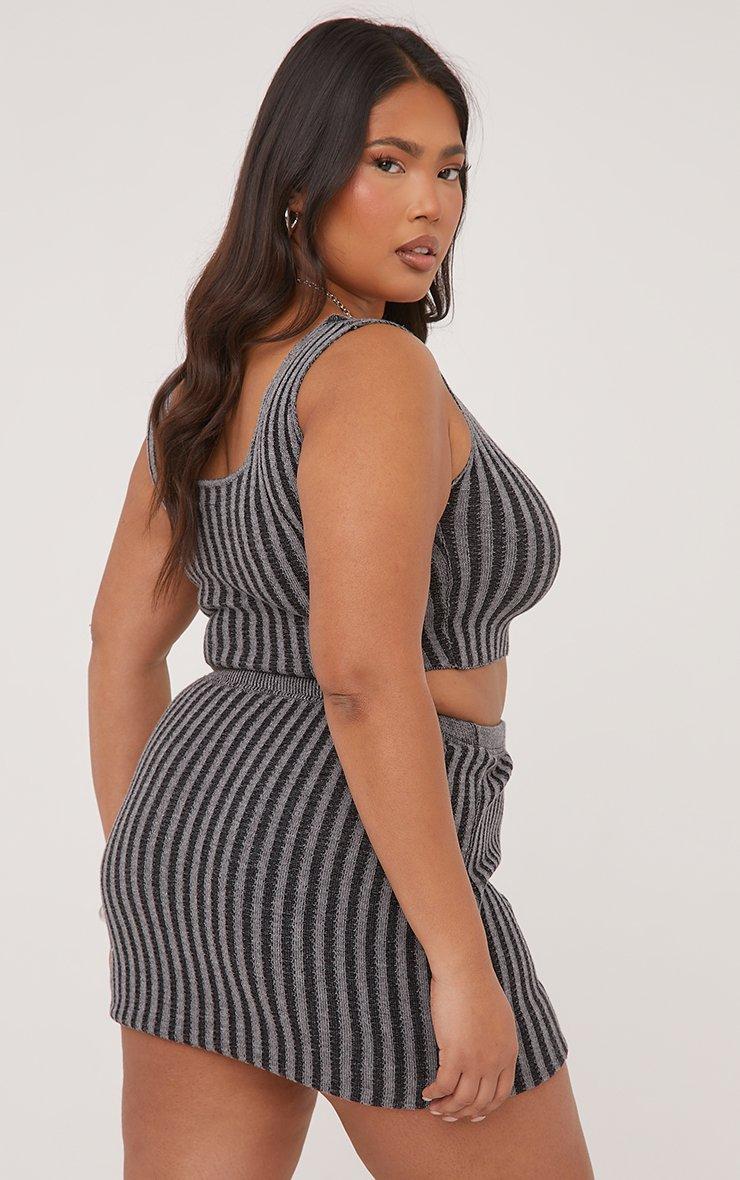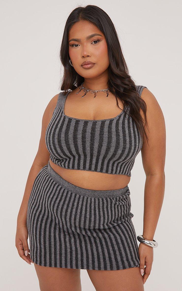 Plus Mini Skirt In Contrast Grey Ribbed Knit
