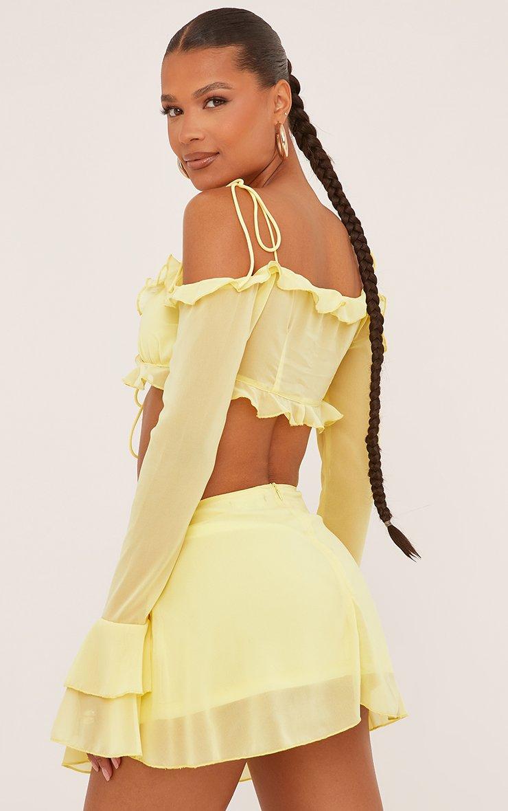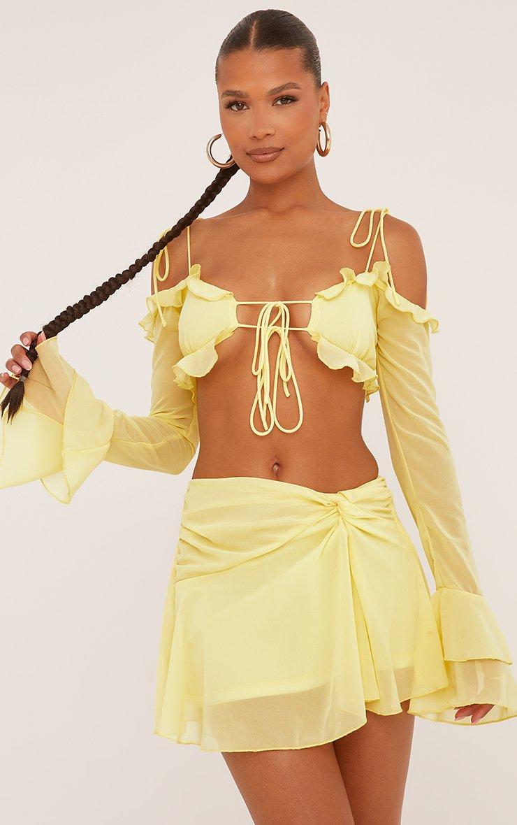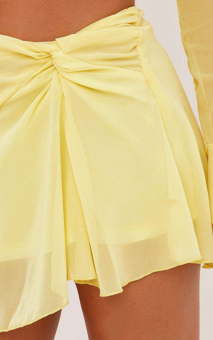 Mid Rise Side Knot Detail Mini Skirt In Lemon Chiffon