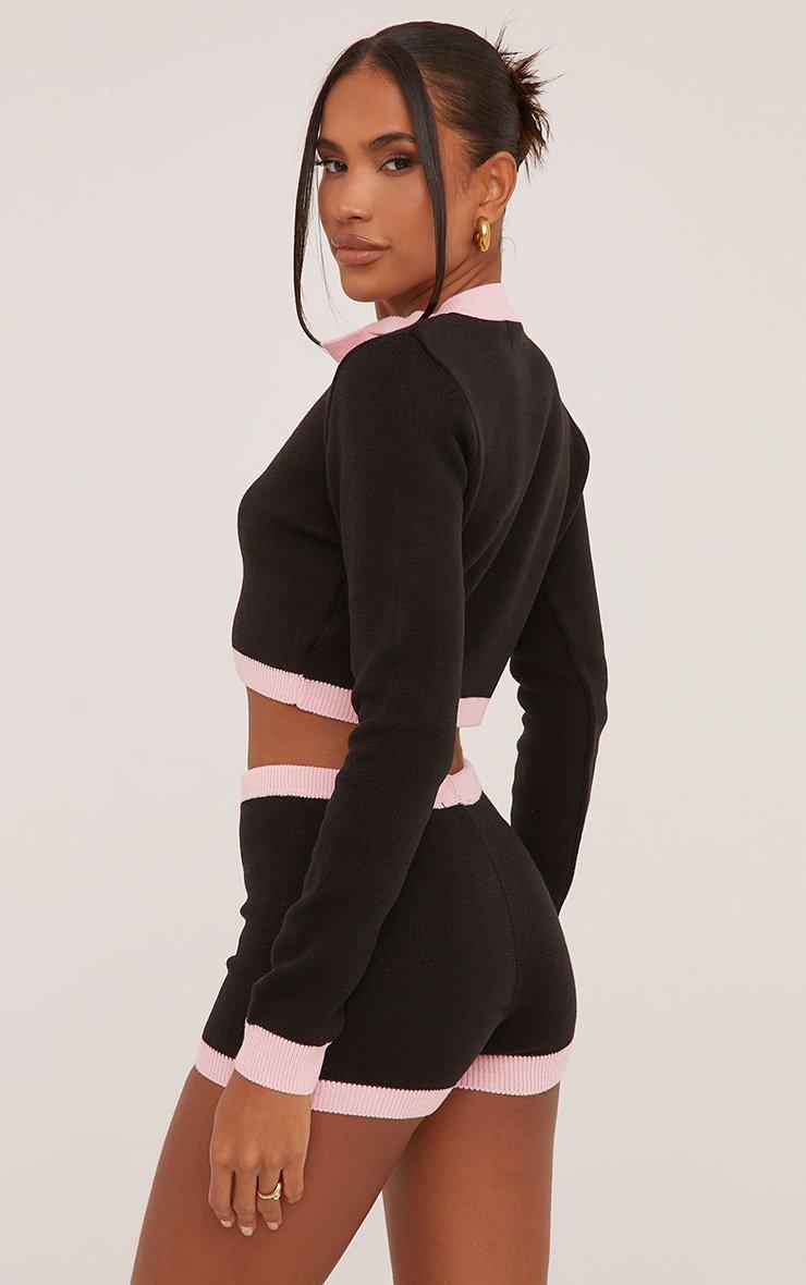 These shorts are a yes from us. Featuring a black knit material, a high waist and a contrast trim.