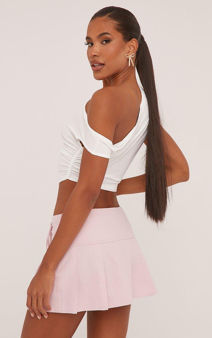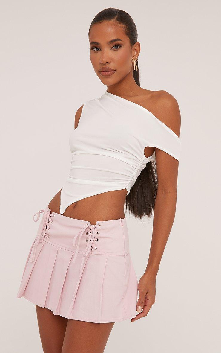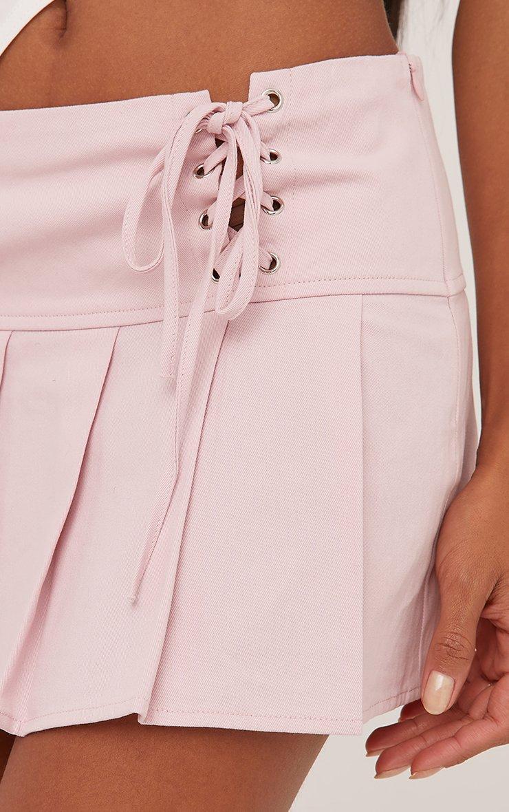 Low Rise Lace Up Detail Pleated Mini Skirt In Light Pink