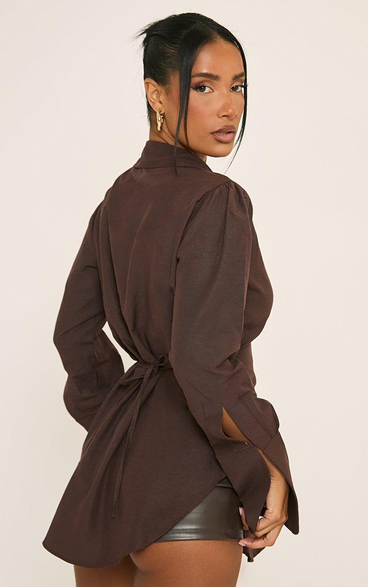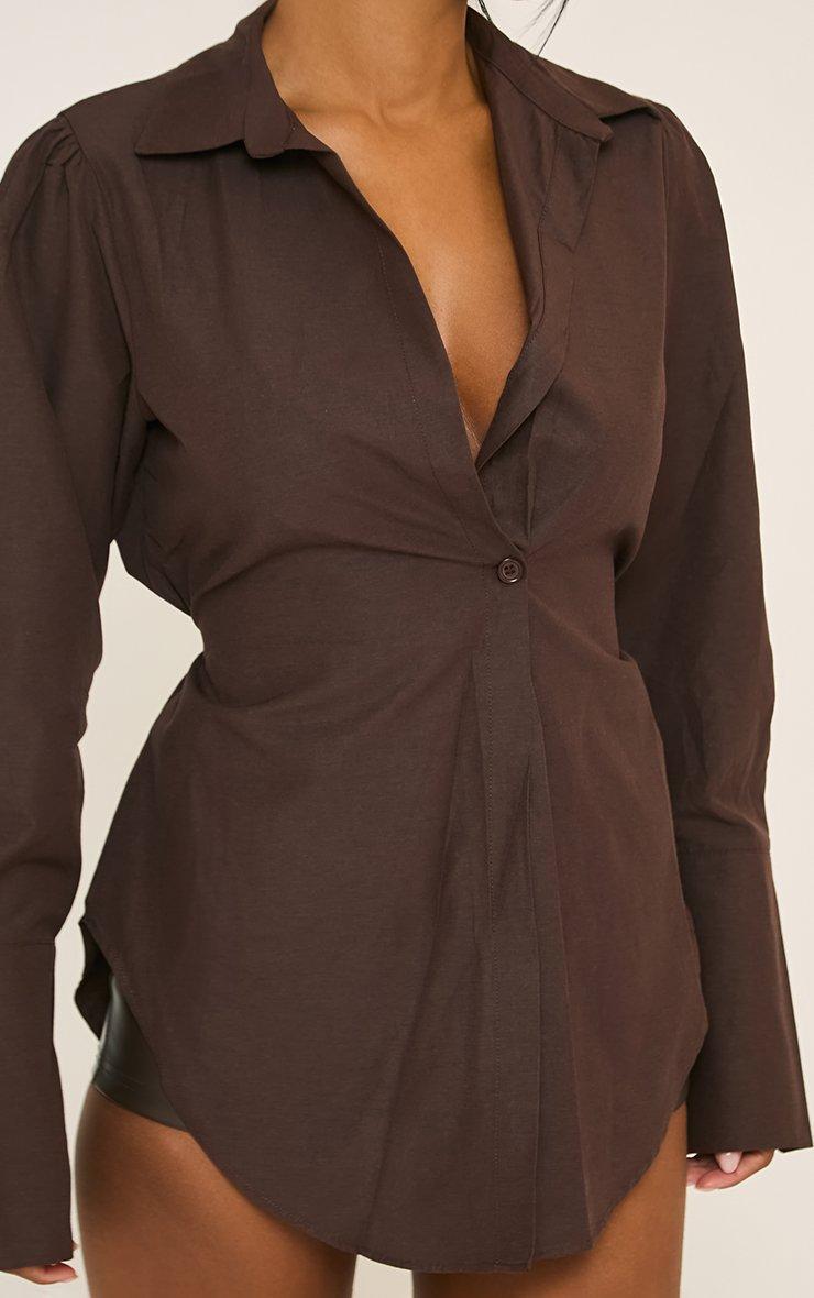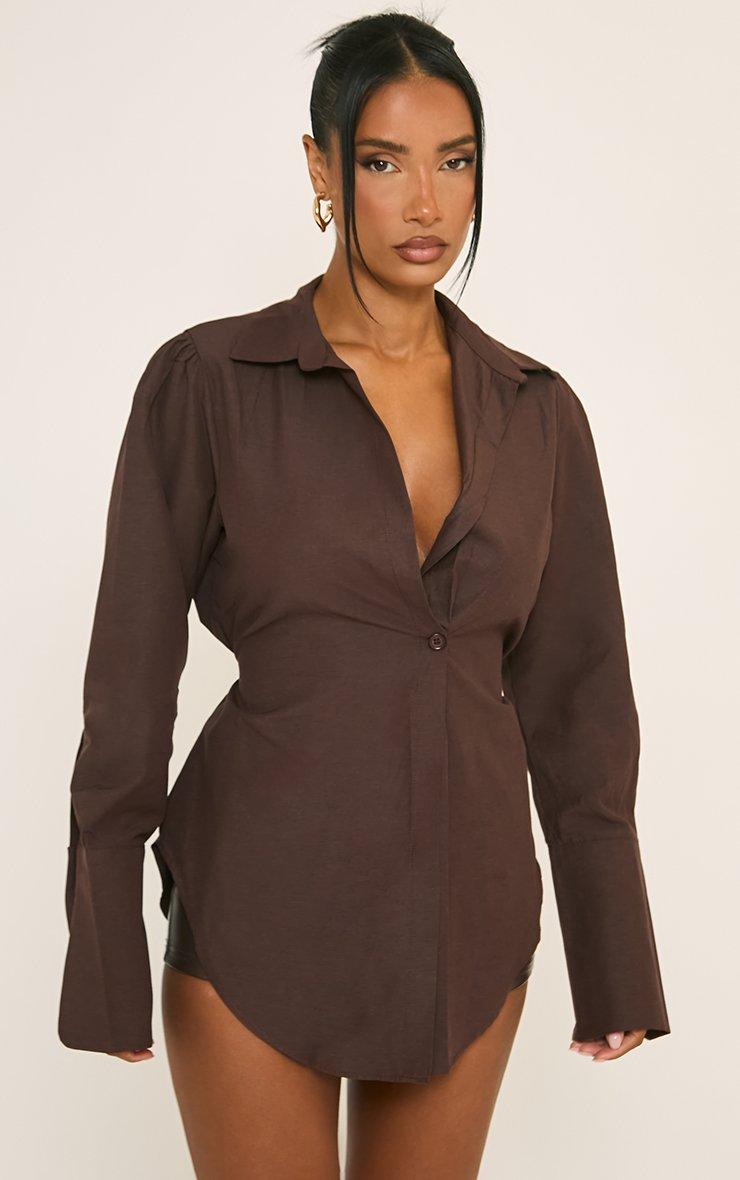 Long Sleeve Button Front Shirt In Brown