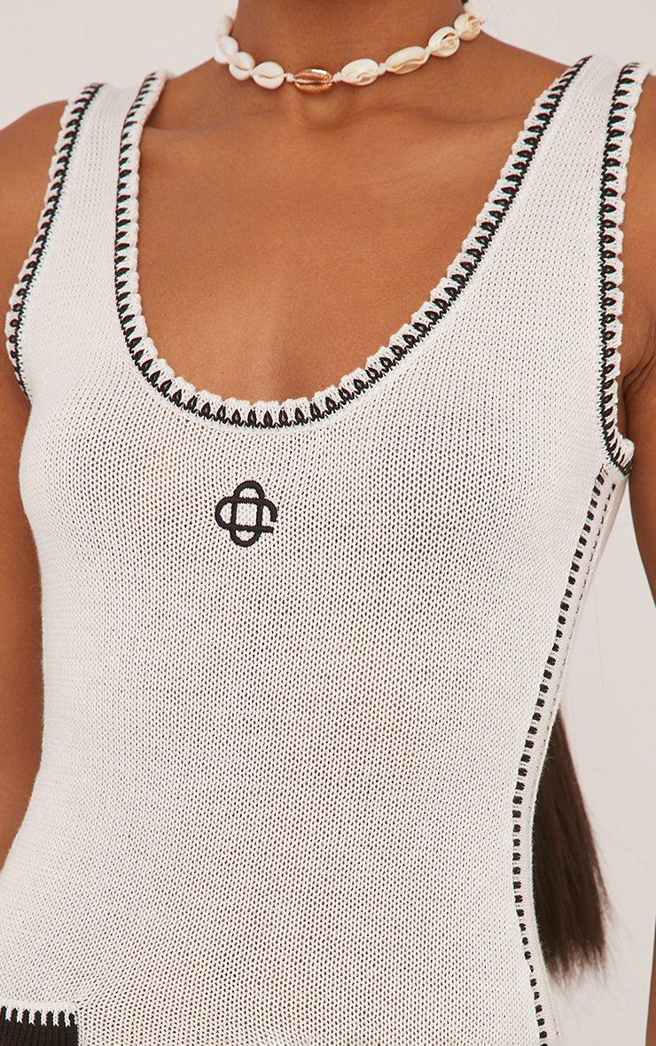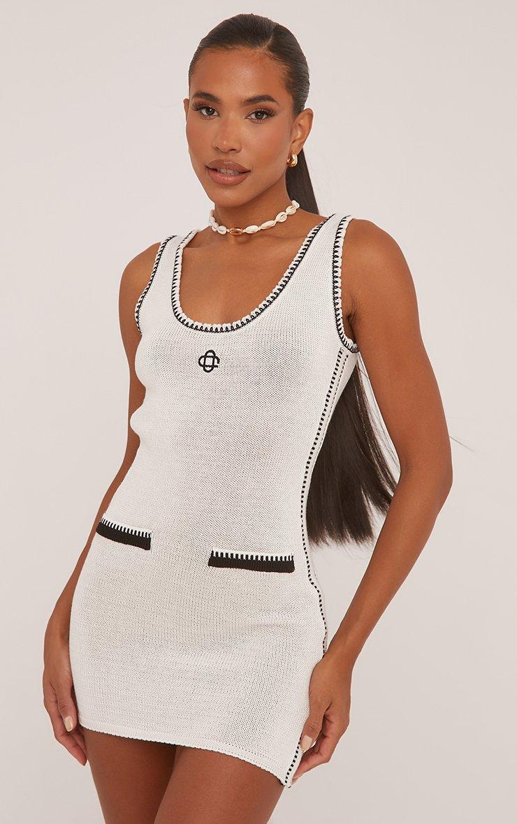 Scoop Neck Swirl Logo Contrast Trim Mini Bodycon Dress In Cream Knit
