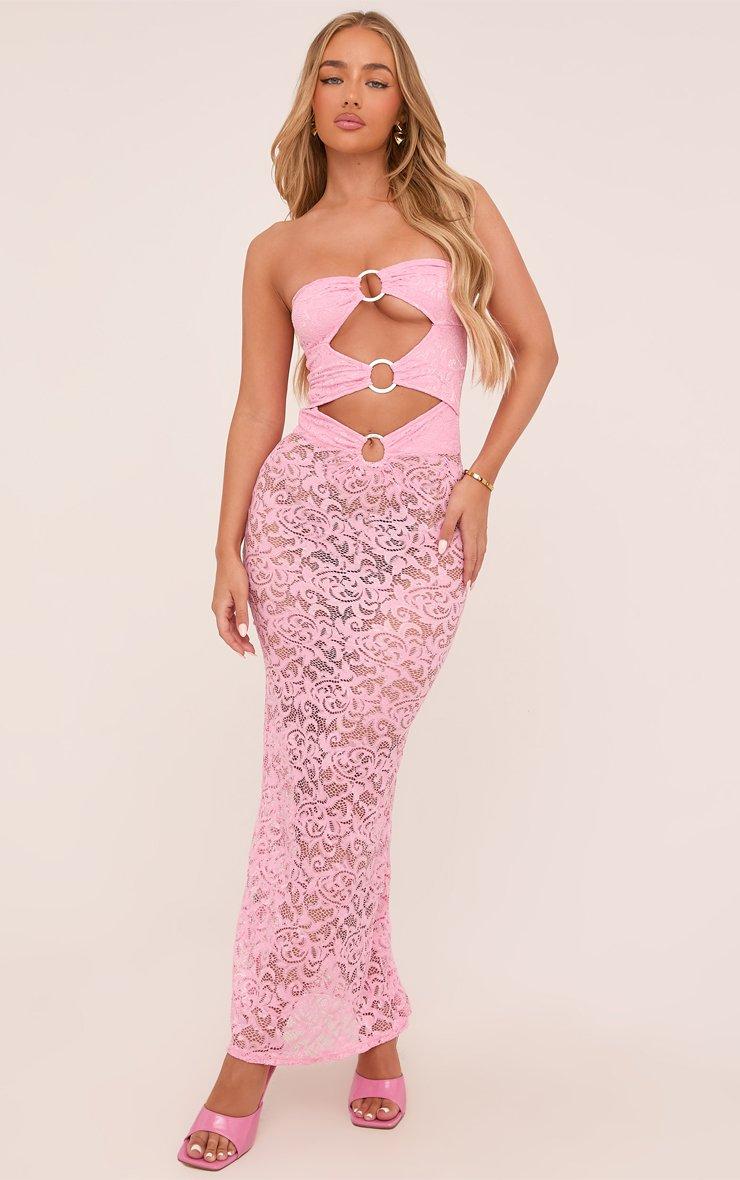 Bandeau Ring Detail Cut Out Maxi Dress In Pink Lace