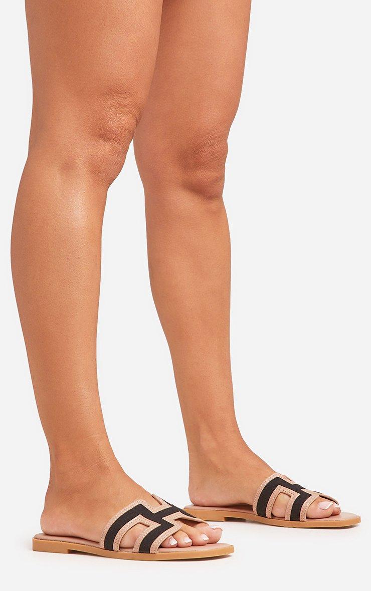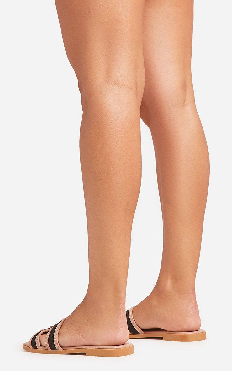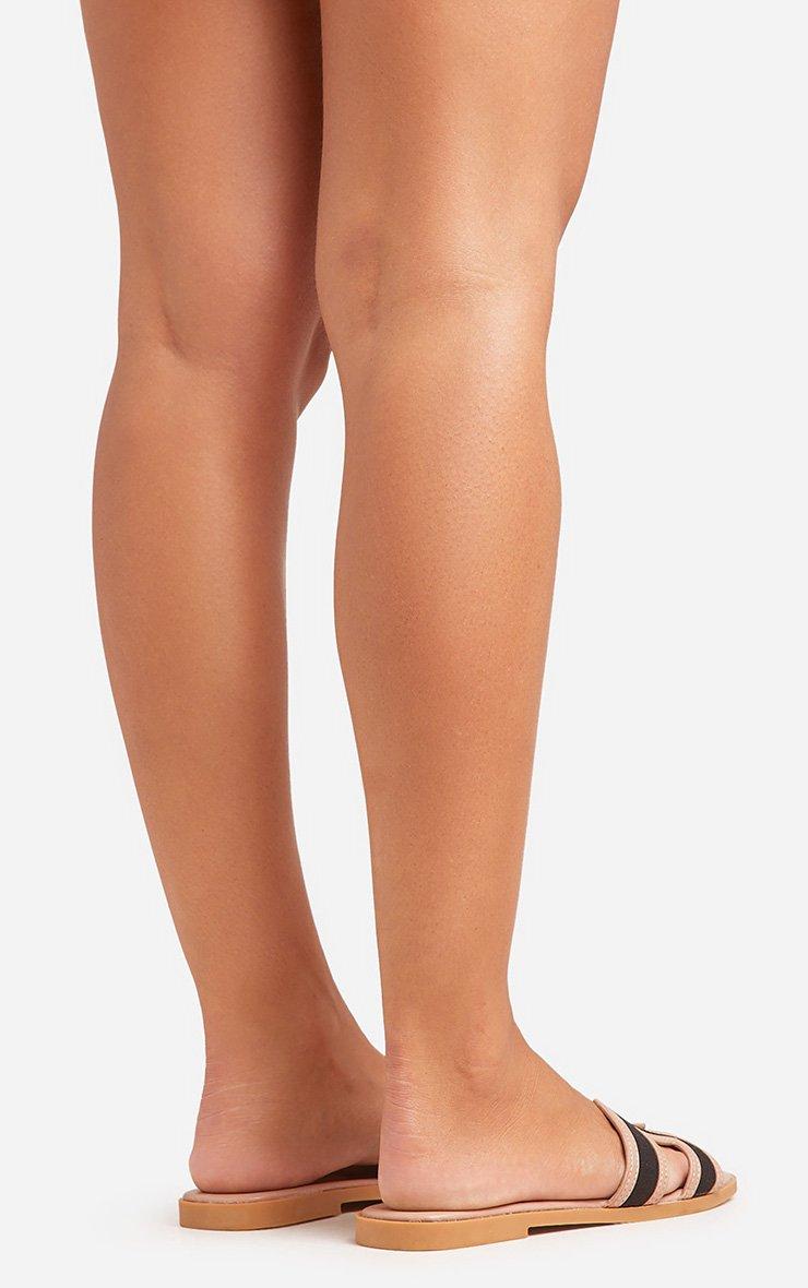 Simms Contrast Detail Caged Flat Slider Sandal In Nude Faux Leather