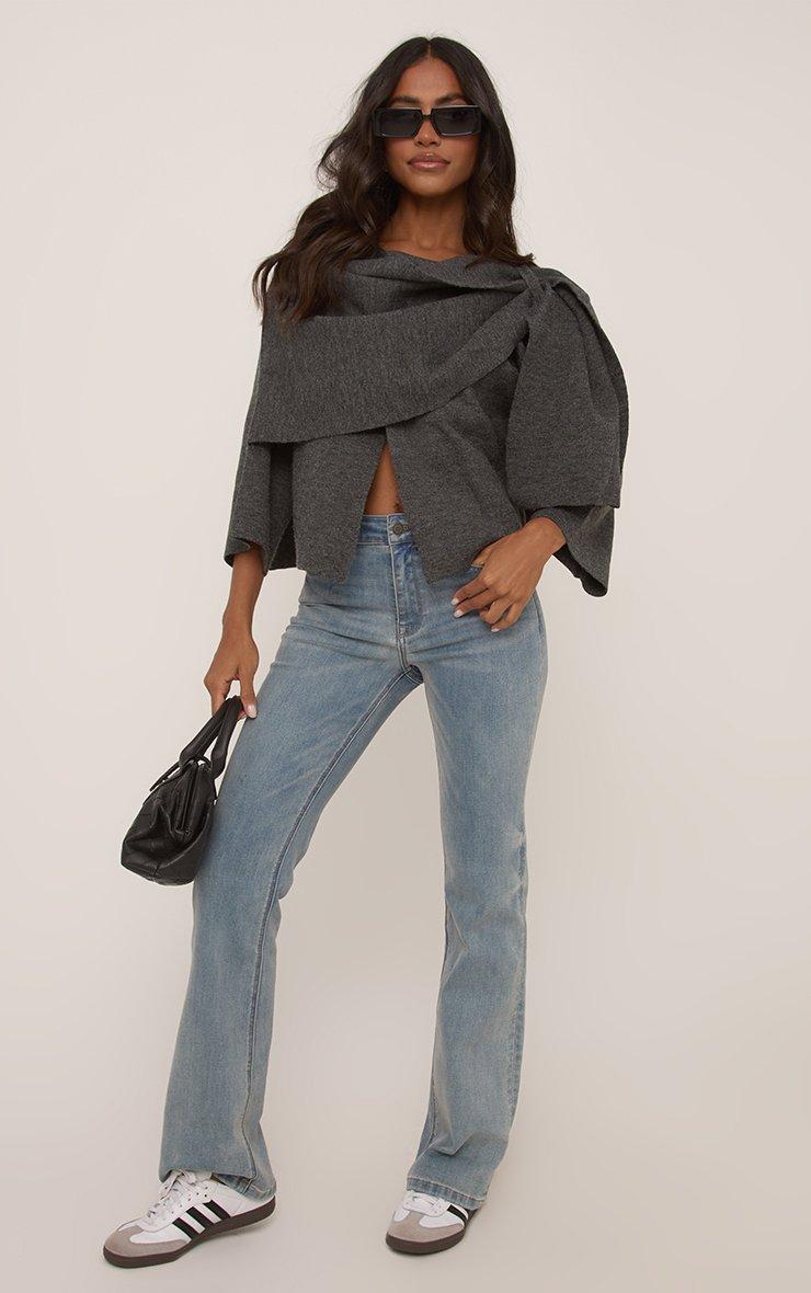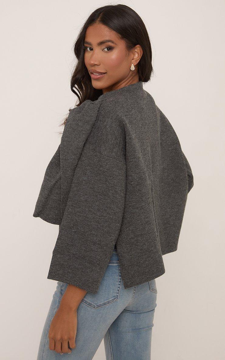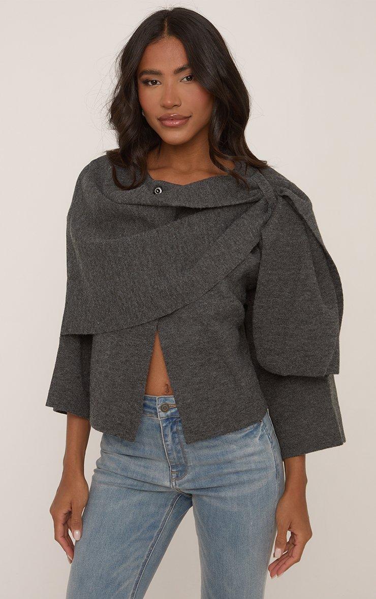 Look effortlessly chic in our Scarf Detail Wool Look Jacket In Grey. This grey scarf jacket is all about that stylish warmth with its wool look fabric and luxe scarf detail. Perfect for layering over your outfits when the chill hits— this wool jacket is effortlessly glam with a touch of luxe.
