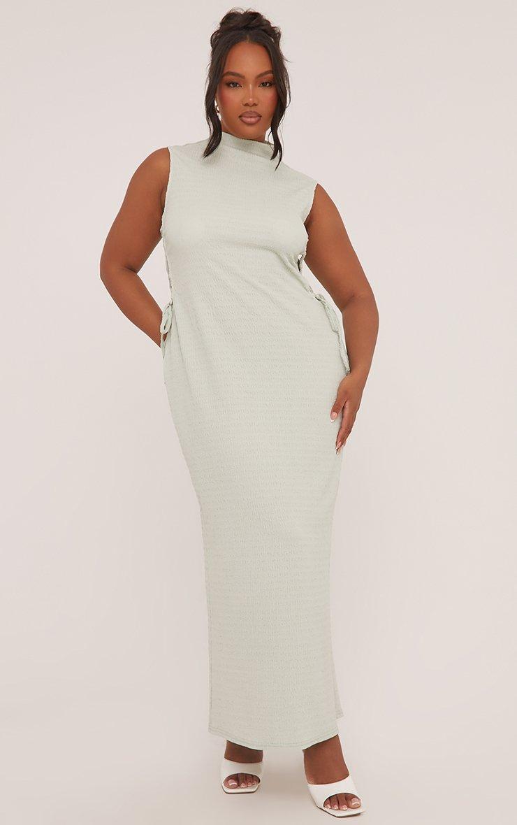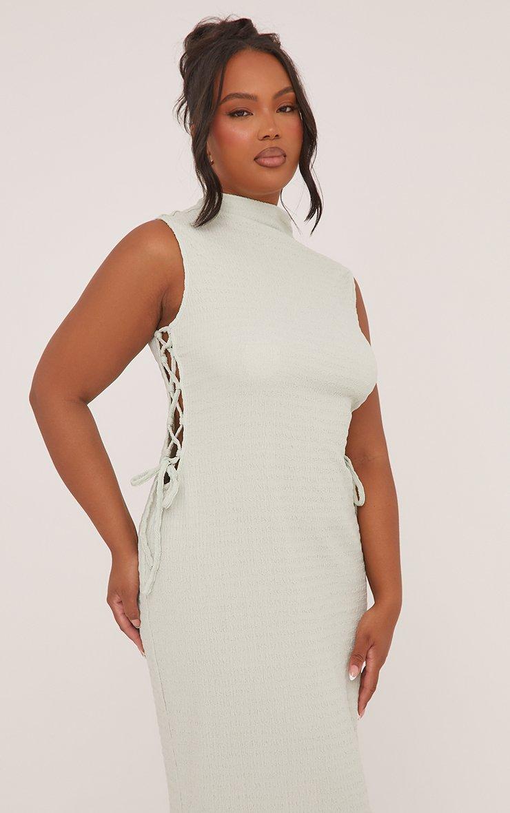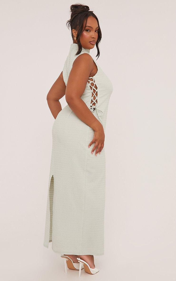 Plus High Neck Lace Up Side Maxi Dress Im Sage Green Texture