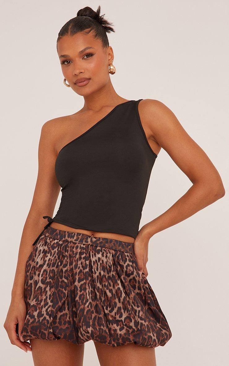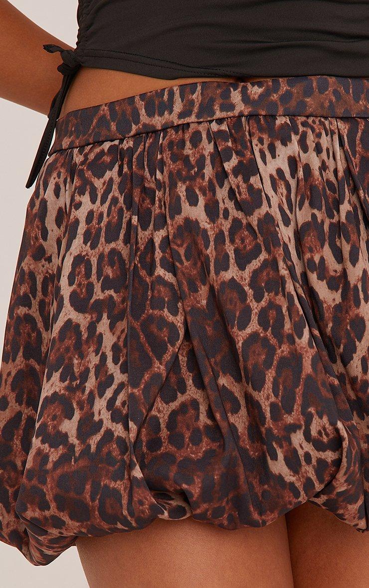 Mid Rise Puffball Mini Skirt In Brown Leopard Print