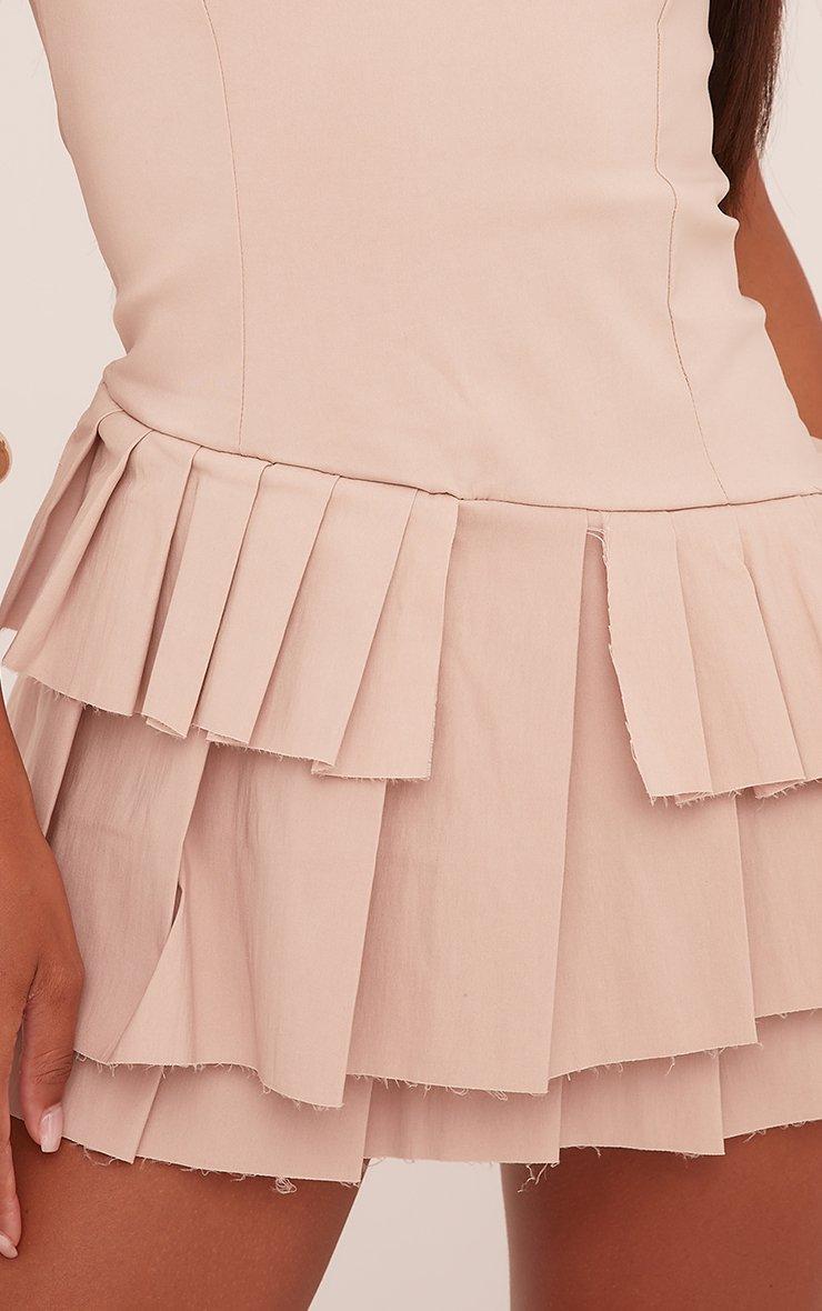 Square Neck Pleated Hem Mini Dress In Nude Woven