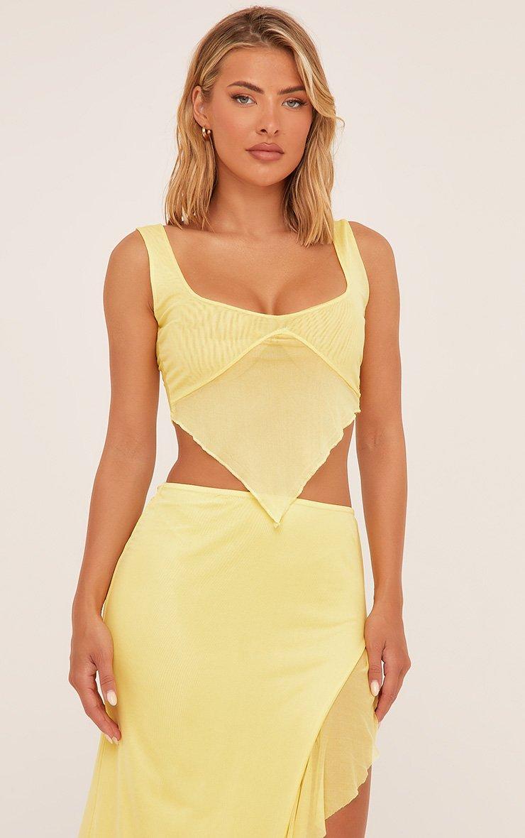 Plunge Pointed Hem Top In Lemon Mesh