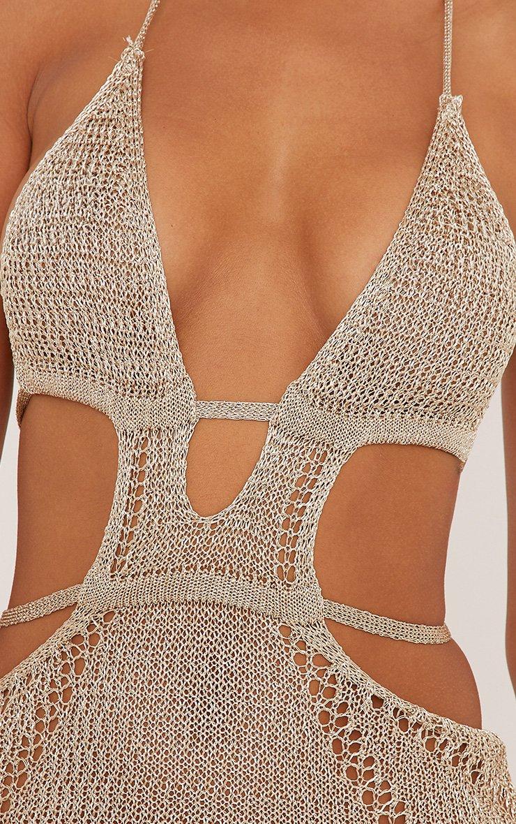 Plunge Cut Out Mini Bodycon Dress In Gold Metallic Knit