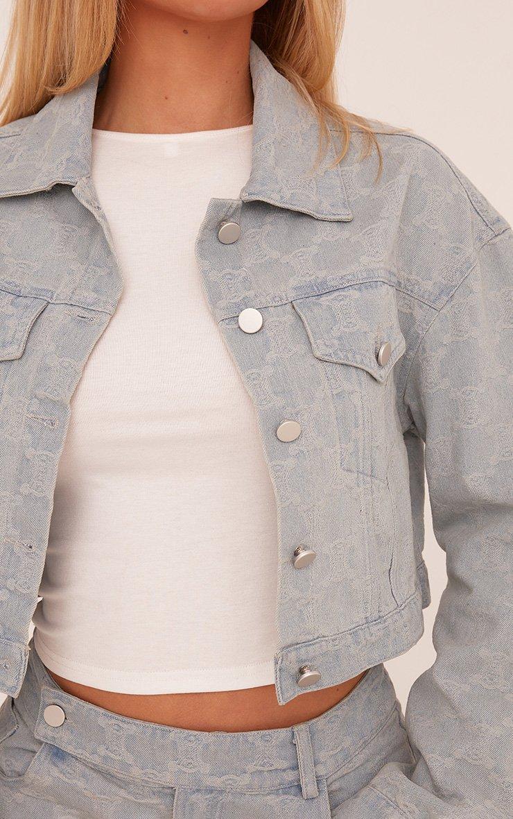 Logo Detail Cropped Jacket In Light Blue Denim