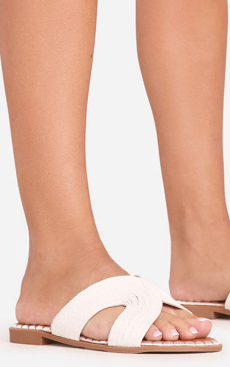 Take your summer days on in style with these sandals. Featuring a white woven material, a cut out detail, a curved strap and a slider sandal design.