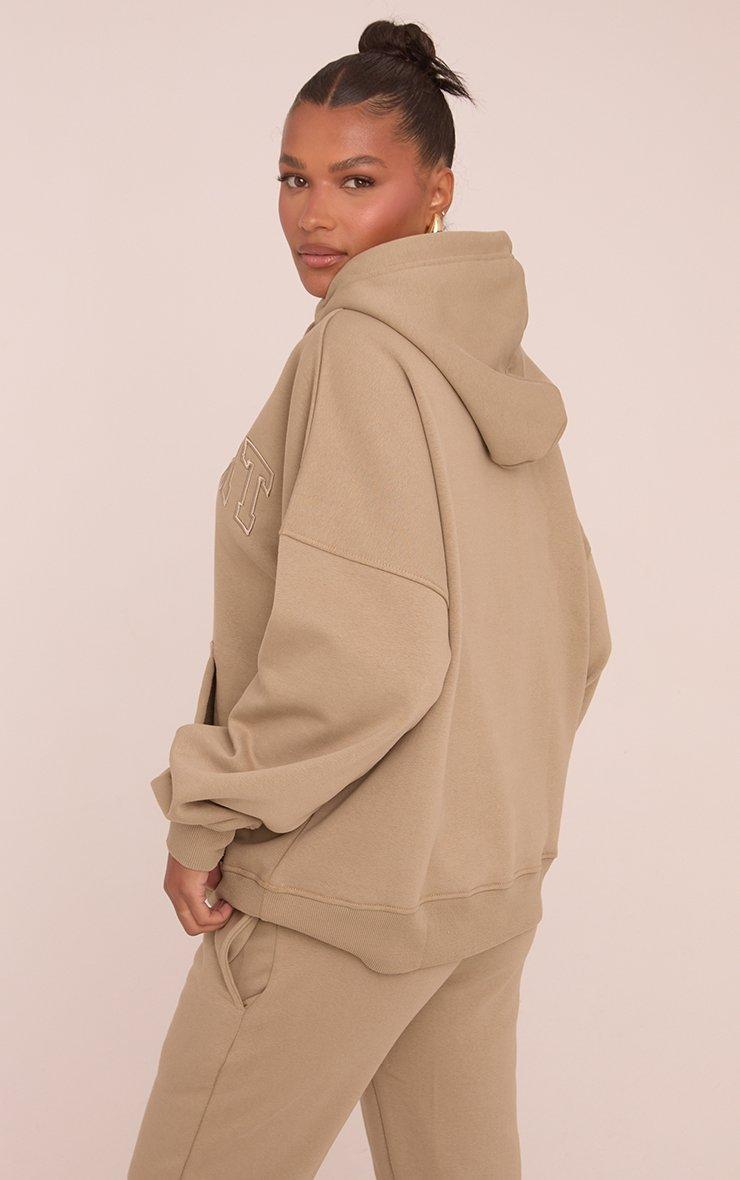 Oversized Ego Embossed Hoodie In Taupe Brown
