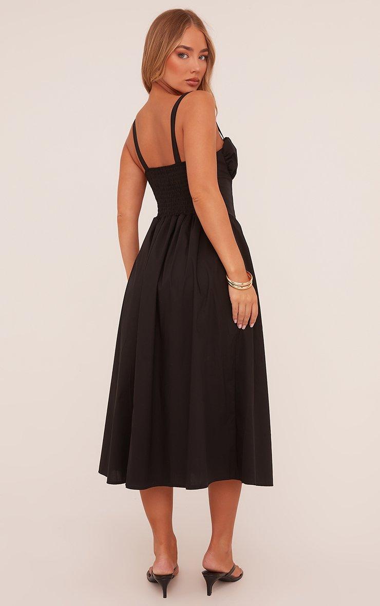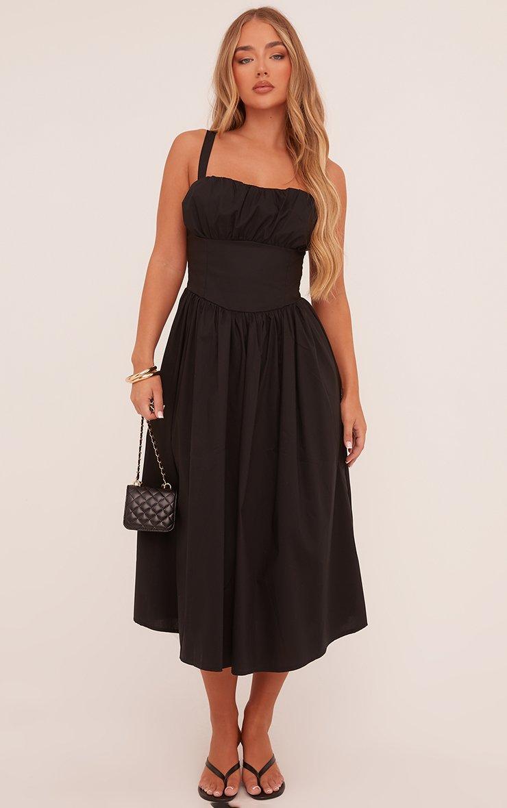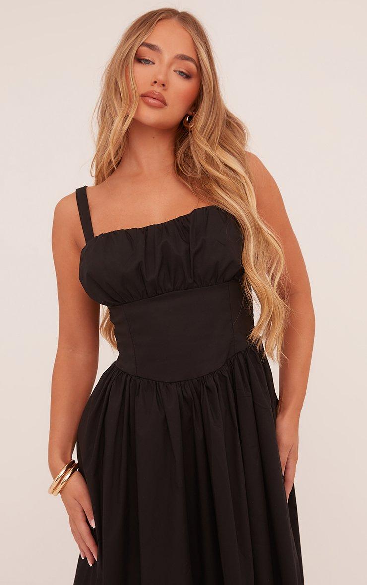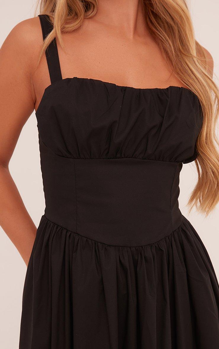 Square Neck Ruched Bust Maxi Skater Dress In Black Woven