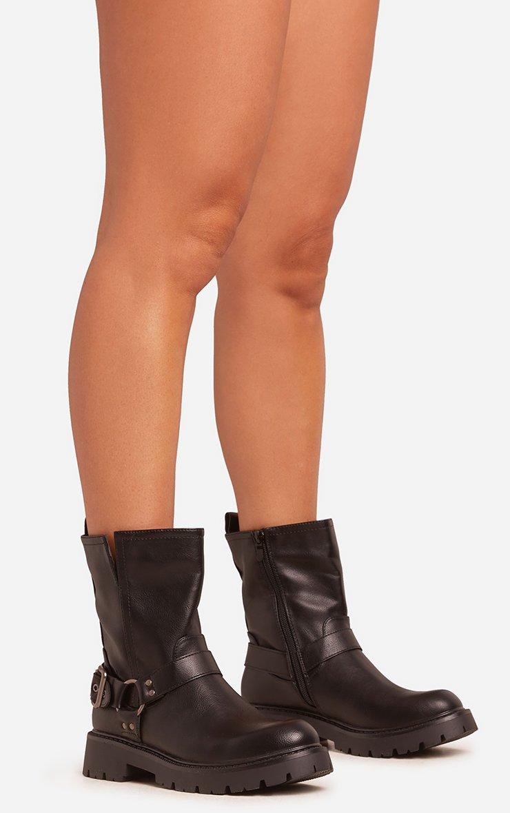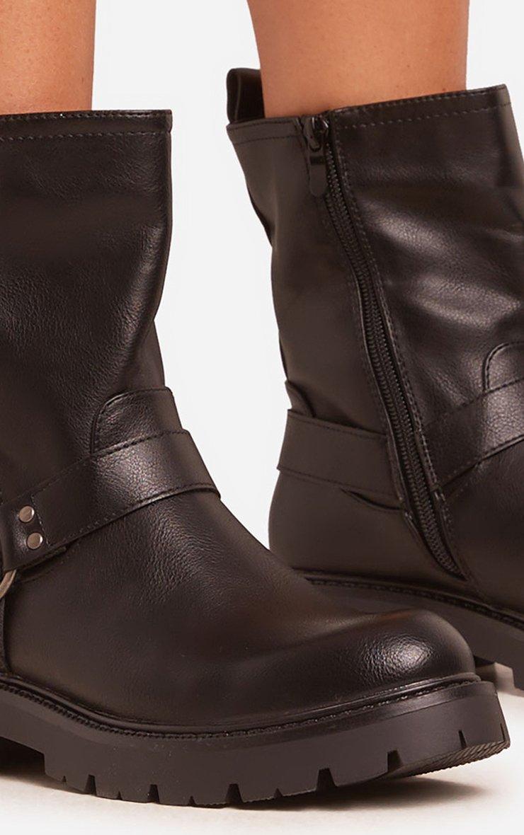 Nolan Ring Detail Chunky Sole Ankle Biker Boot In Black Faux Leather