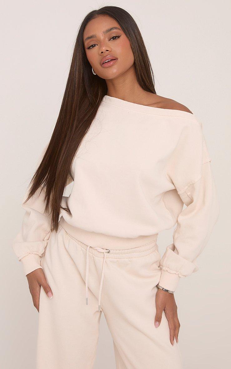 This Long Sleeve Off The Shoulder Sweater Jumper In Cream is perfect for off-duty days. Our cream off shoulder jumper​ is giving cosy-chic with its long sleeves, flattering off-shoulder fit and fresh cream tone. Pair this sweater with the matching joggers for a cosy yet cute vibe.