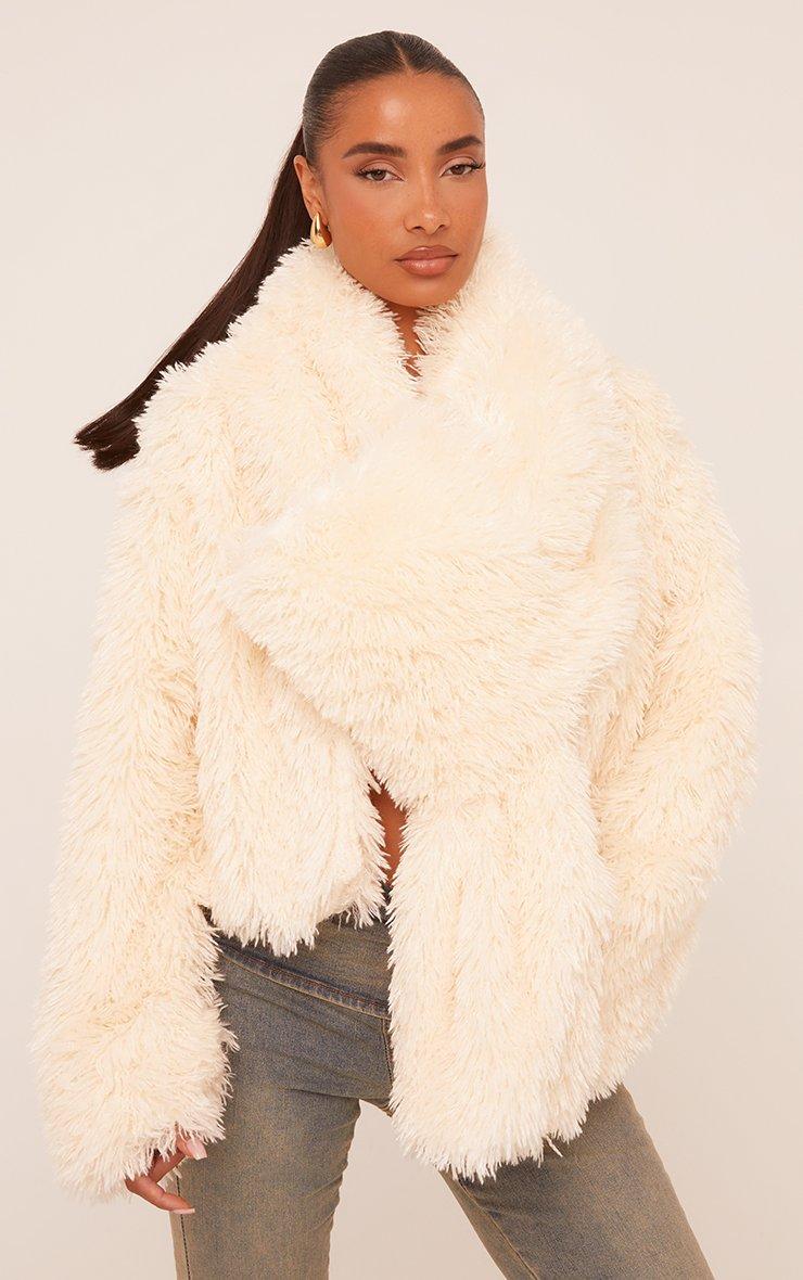 Fluffy Coat And Matching Scarf In Cream Faux Fur