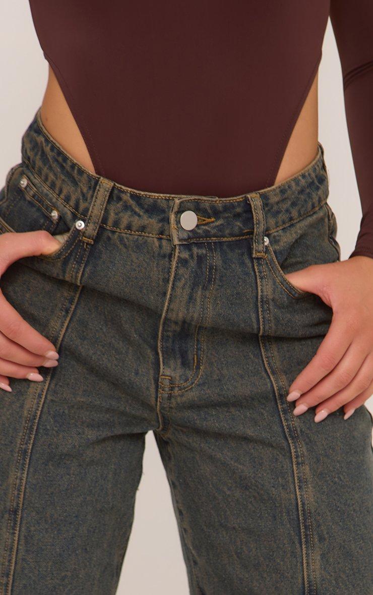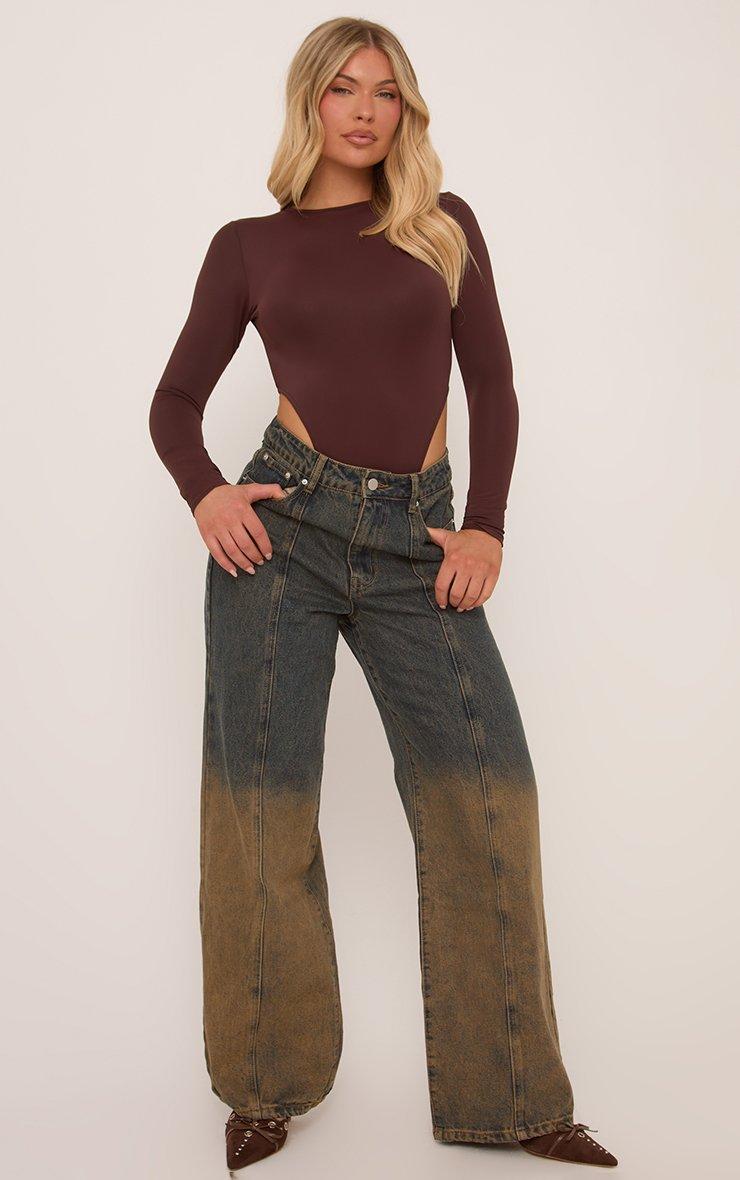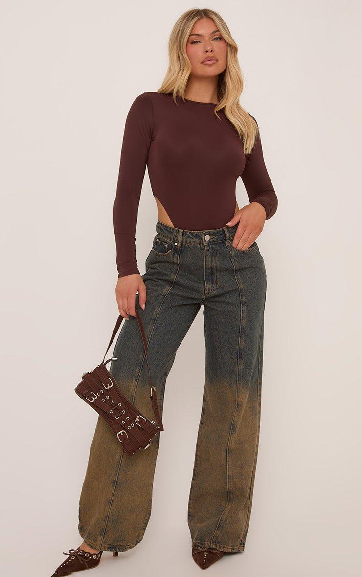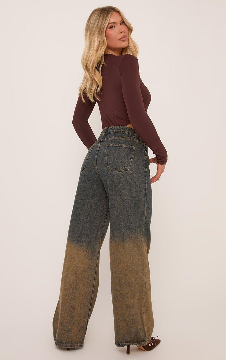 Low Rise Denim Wide Leg Jeans In Dark Blue Ombre
