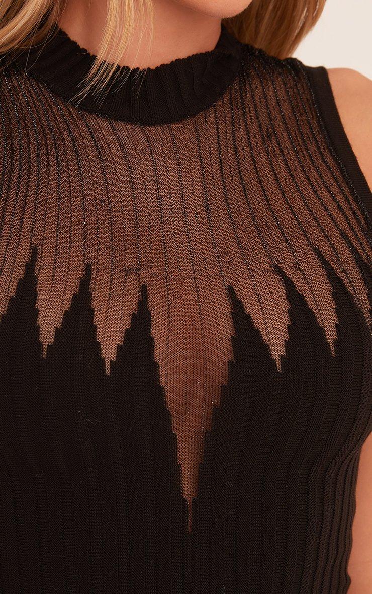 Sleeveless Mesh Panel Mini Bodycon Dress In Black Sheer Knit