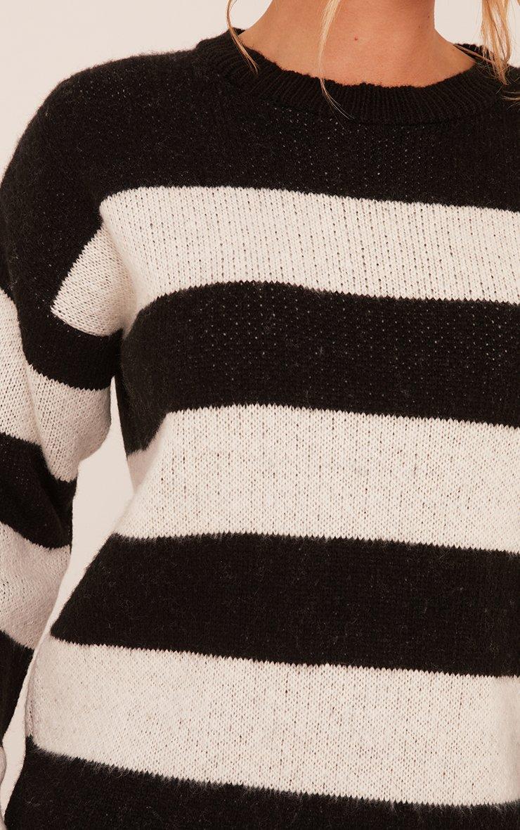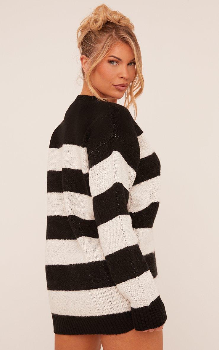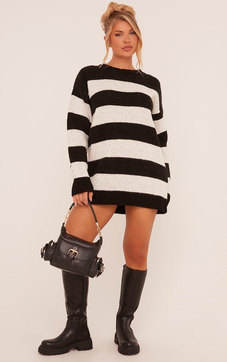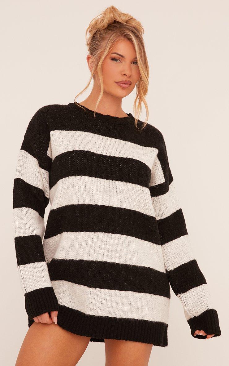 Long Sleeve Oversized Jumper Dress In Black Striped Soft Knit