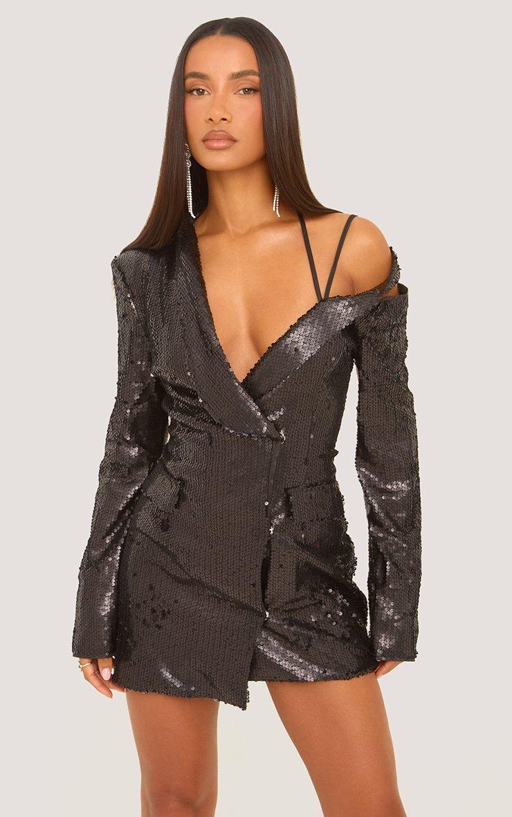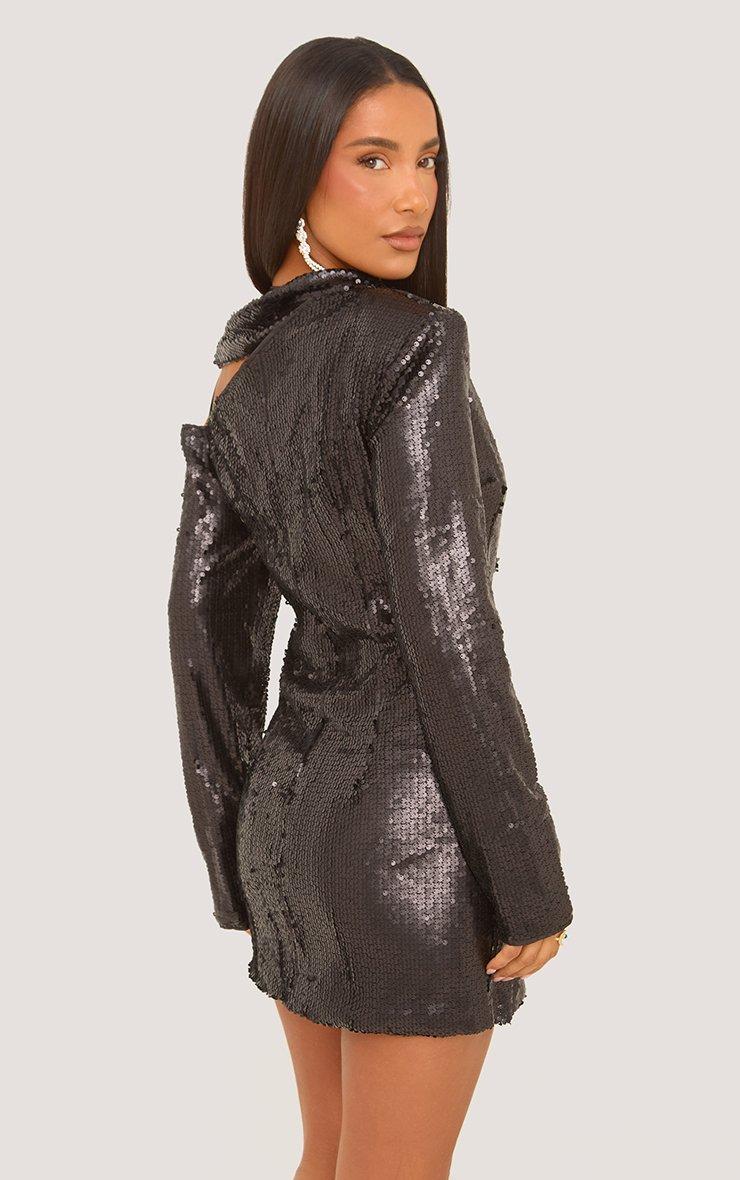 Cut Out Shoulder Detail Blazer Dress In Black Sequin