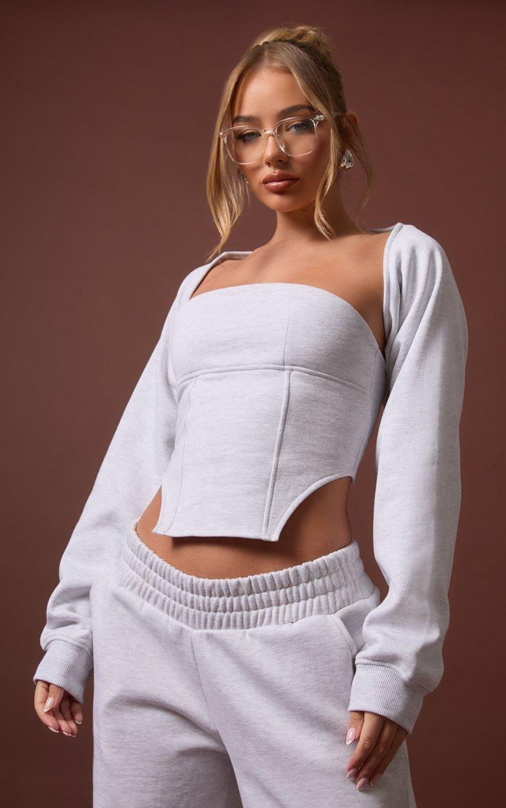 Hit refresh on your wardrobe with our Bandeau Structured Top And Bolero Sleeves In Grey Marl. This gorg bolero and top set comes in a chill grey marl with a bandeau neckline and structured design. Style this loungewear top with the matching trackies for the perfect off-duty vibe!