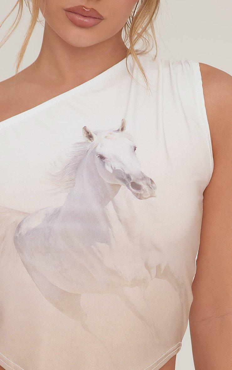 Asymmetric One Shoulder Horse Print Top In Multi Slinky