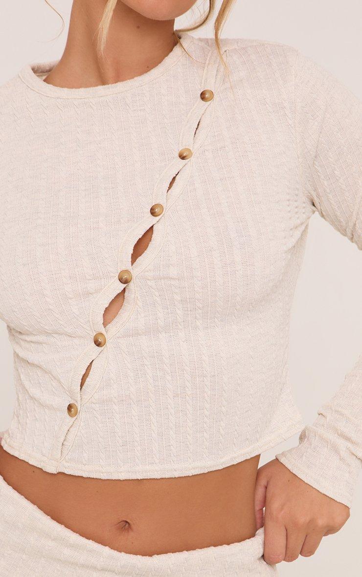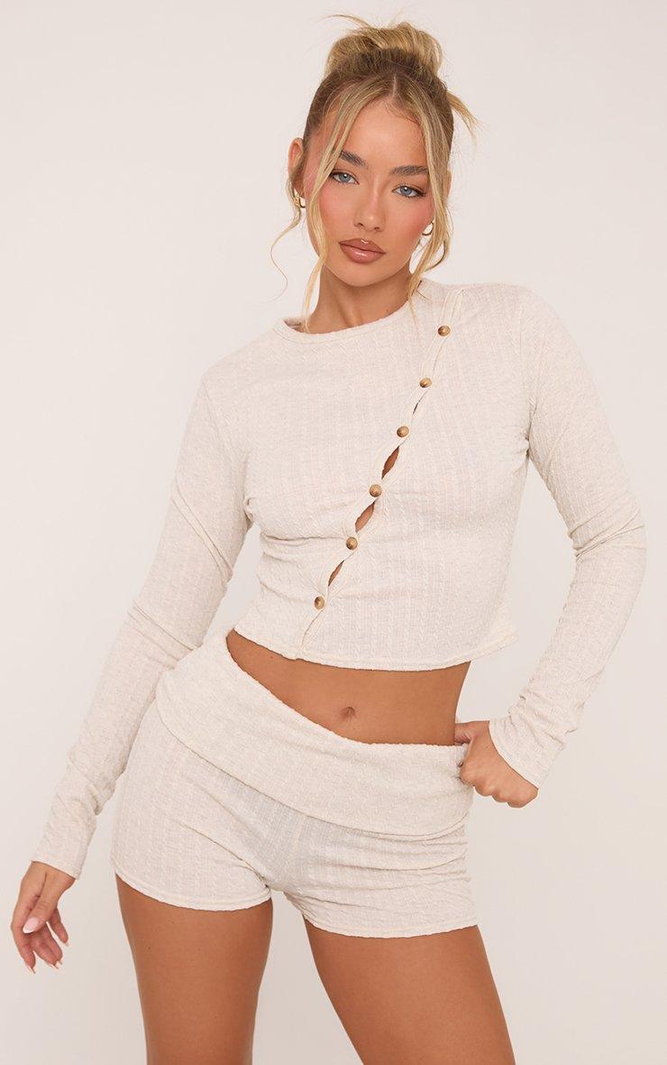 Effortlessly stylish, babe! This long sleeve asymmetric button front top in stone cable is giving major chic vibes. Featuring a unique asymmetric button design and soft, cosy knit, pair it with the matching shorts for a flawless look.