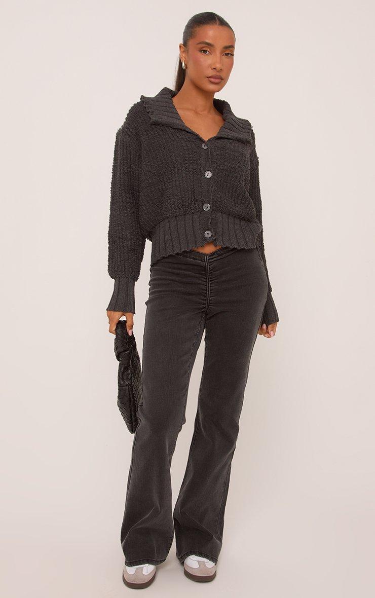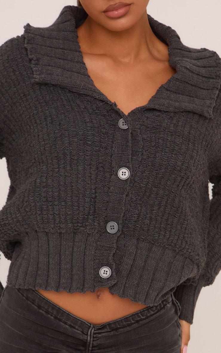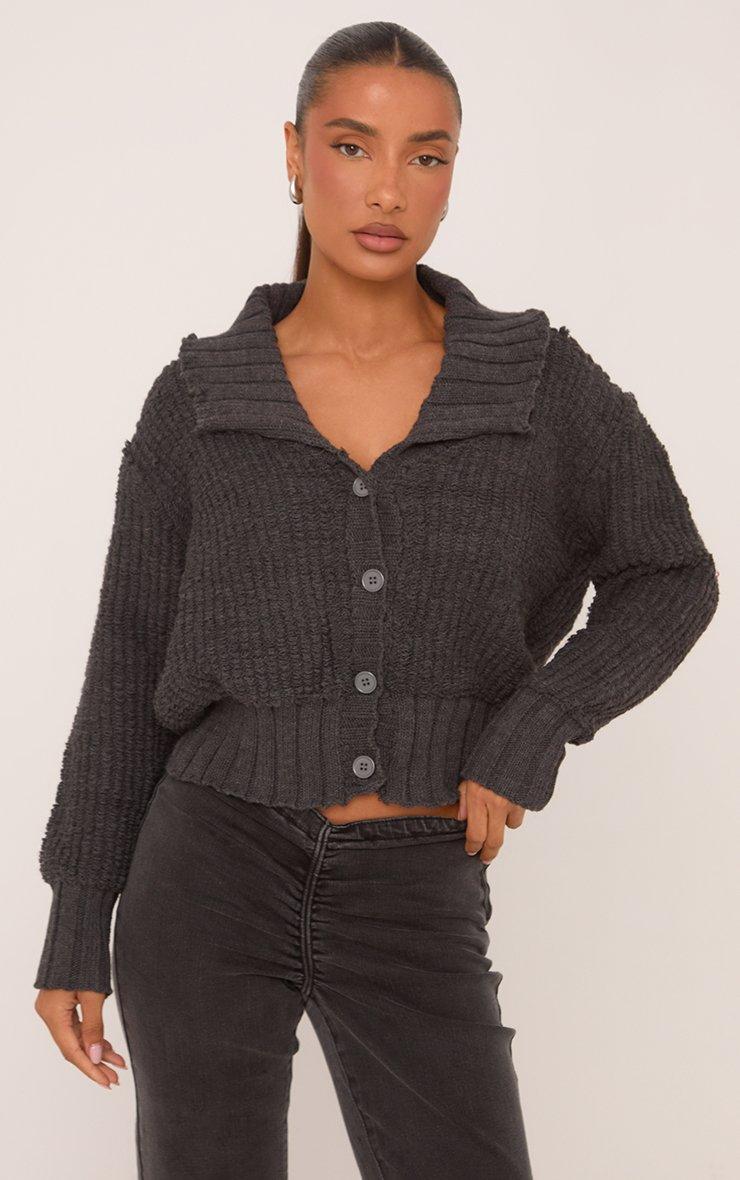 Button Front Collared Cardigan In Grey Rib Knit