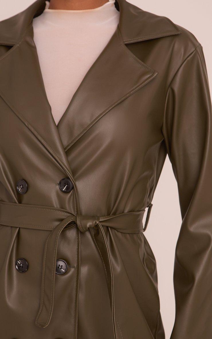 Belted Trench Coat In Dark Green Faux Leather