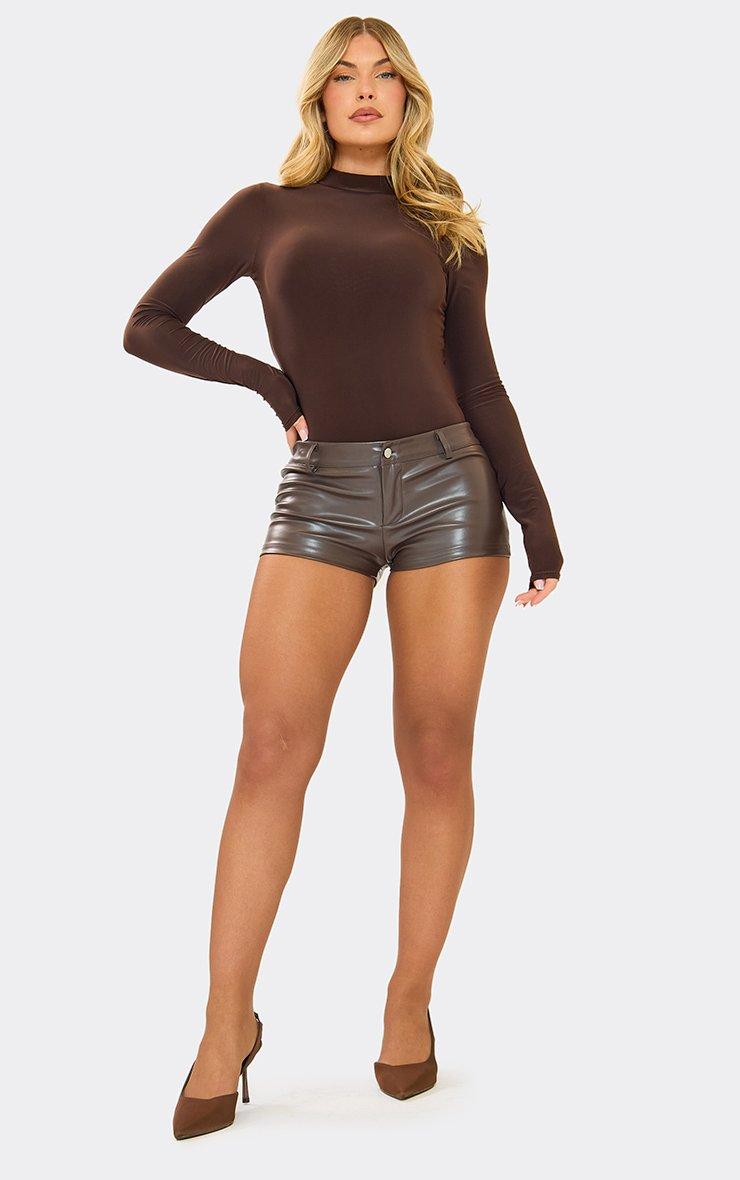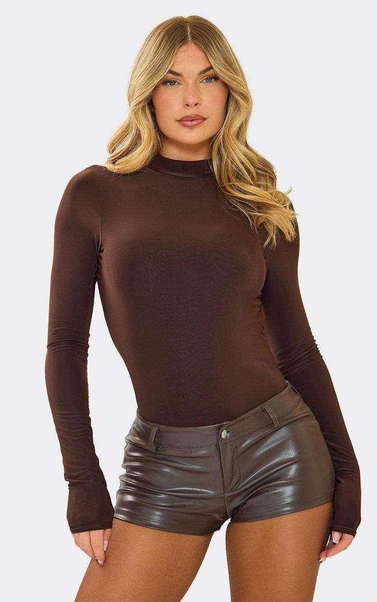 Long Sleeve High Neck Open Back Detail Bodysuit In Chocolate Brown