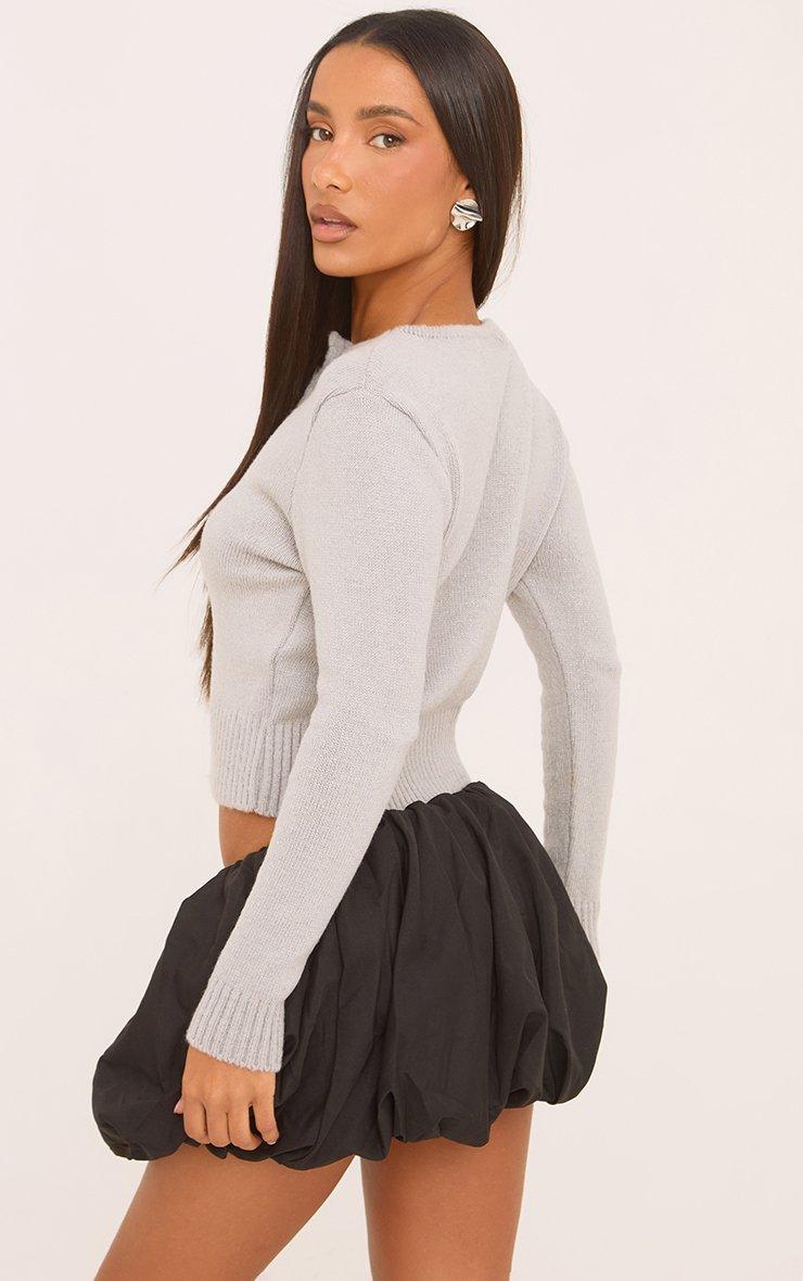 Layer up in style with our Gold Button Detail Cropped Cardigan In Light Grey Fluffy Knit. This grey fluffy cardigan is your cold-weather fave with its luxe gold buttons and light grey fluffy knit. Style this cropped cardigan with a mini skirt and boots for a fierce AW look!