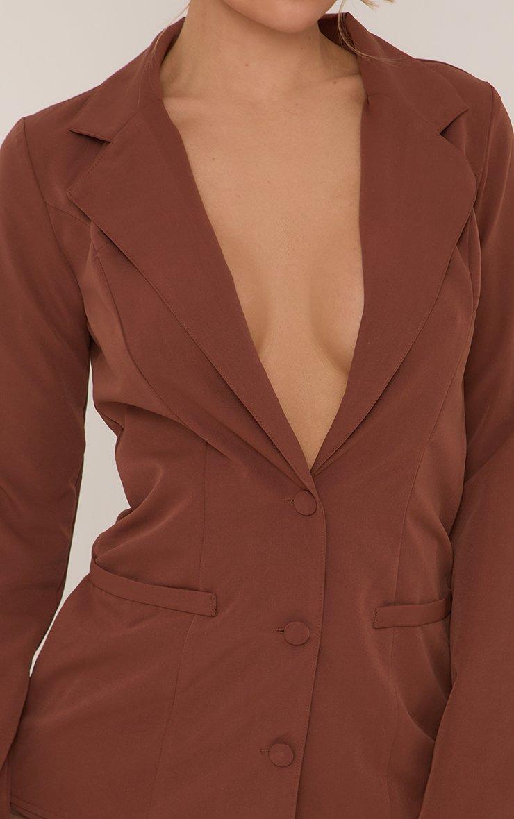 Own the room in our Plunge Neck Tailored Blazer Playsuit In Brown Woven. This ego blazer playsuit blend sharp tailoring with a sexy plunge neckline and rich brown fabric. Whether its brunch or the bar, this playsuit is the chic style you’ve been craving!