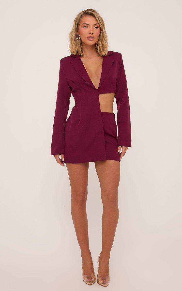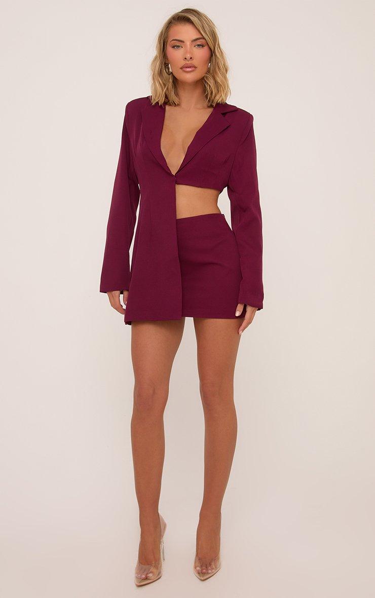 Low Rise Tailored Woven Mini Skirt In Burgundy