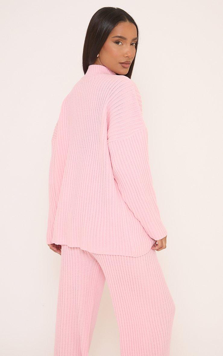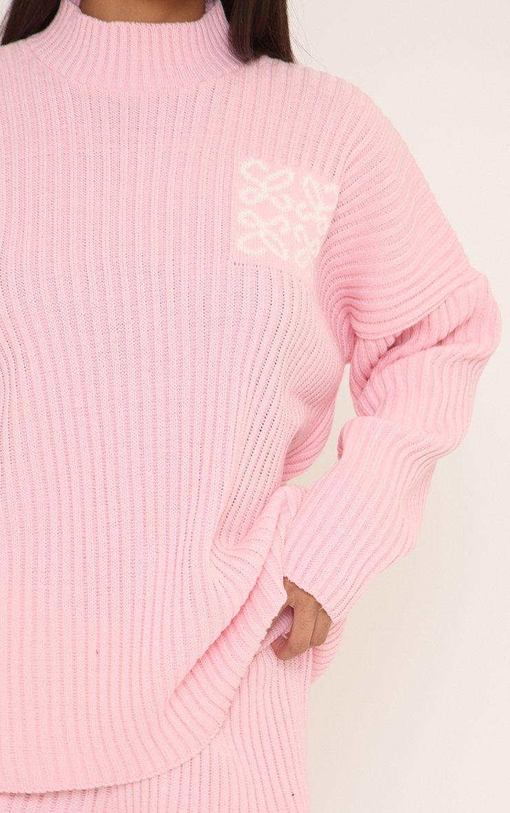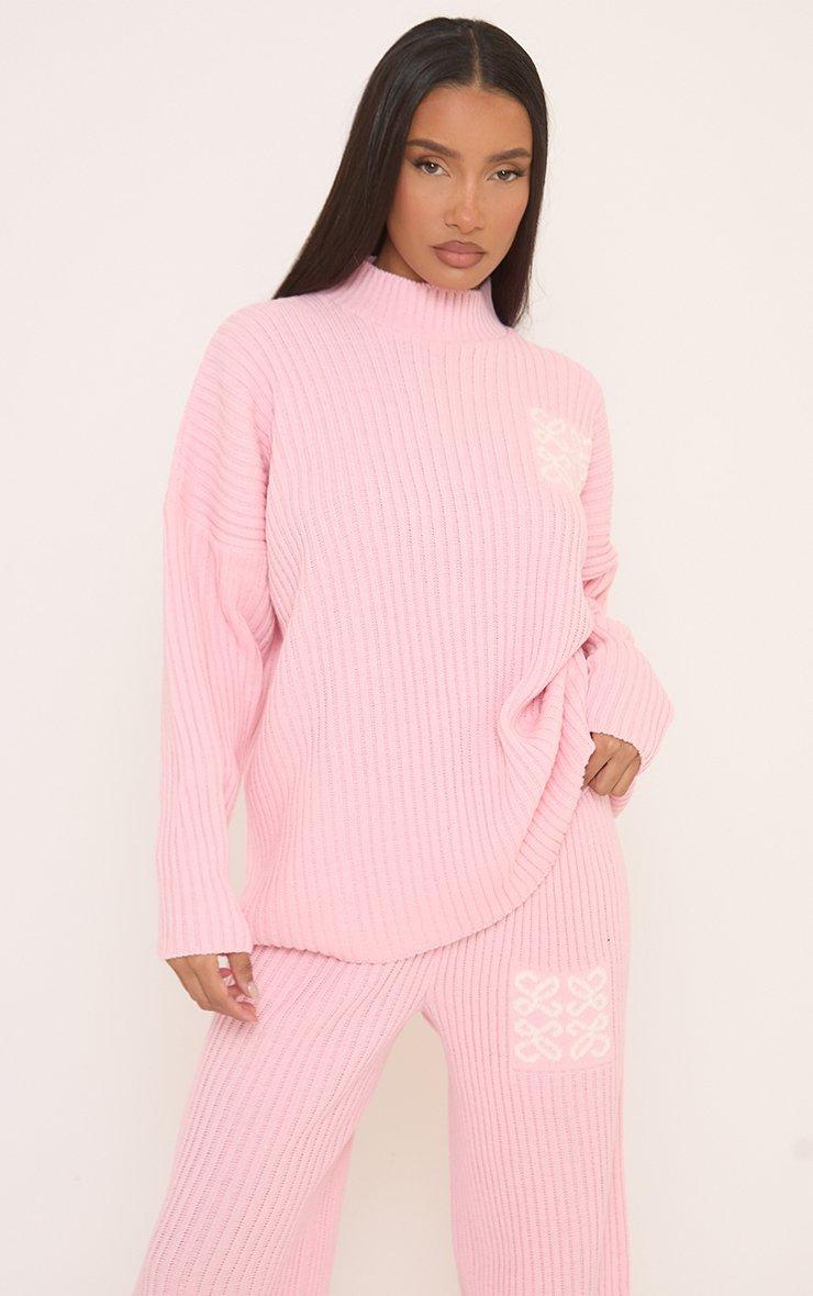 Ready to turn heads, babe? This pink rib knit long sleeve high neck swirl graphic jumper is serving up serious style. The swirl design adds a pop of fun, while the high neck keeps you looking chic and cosy.