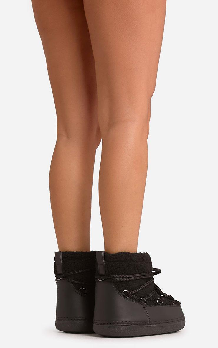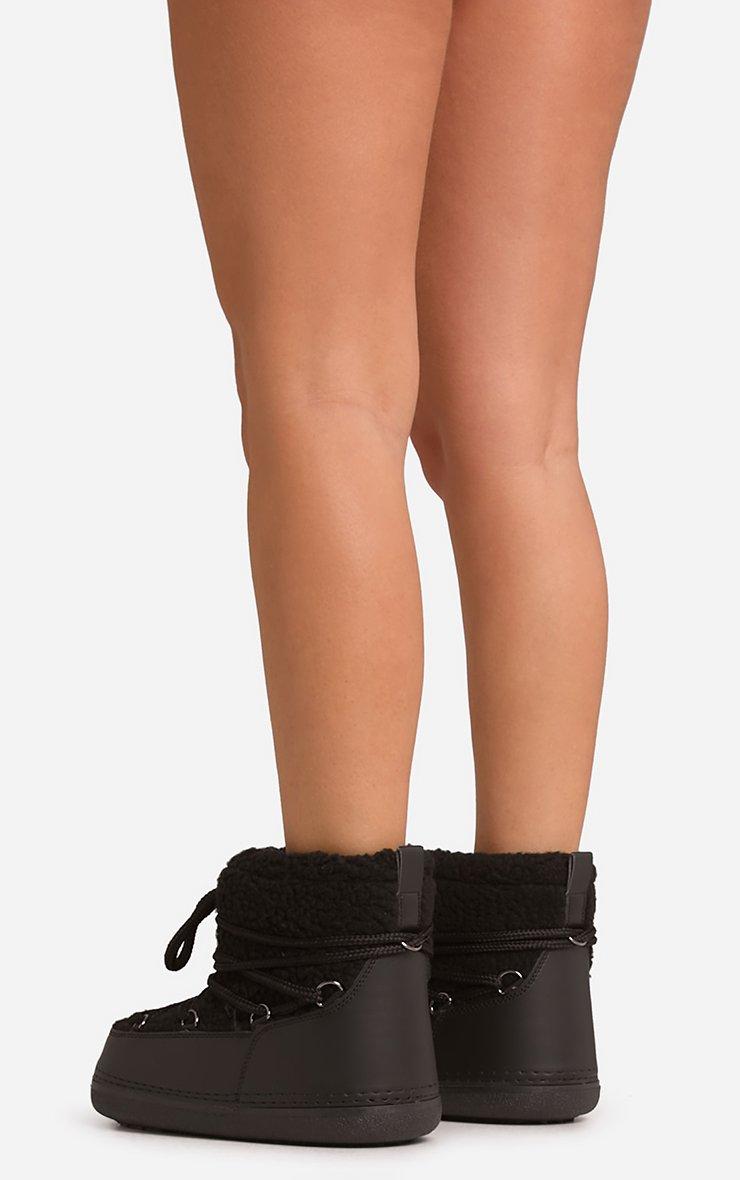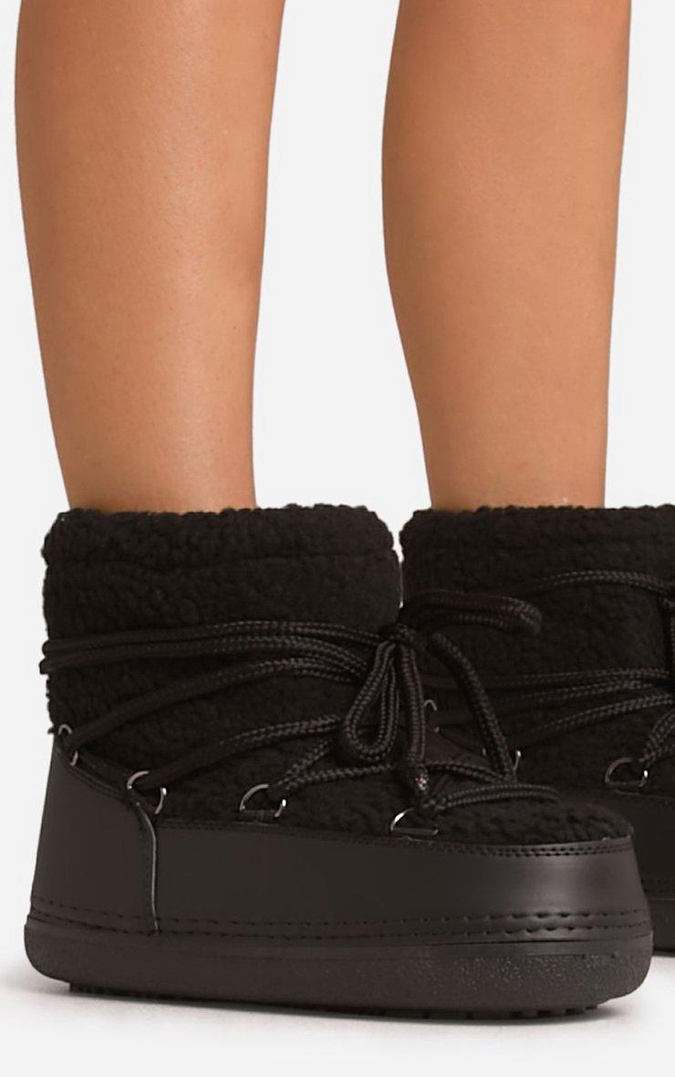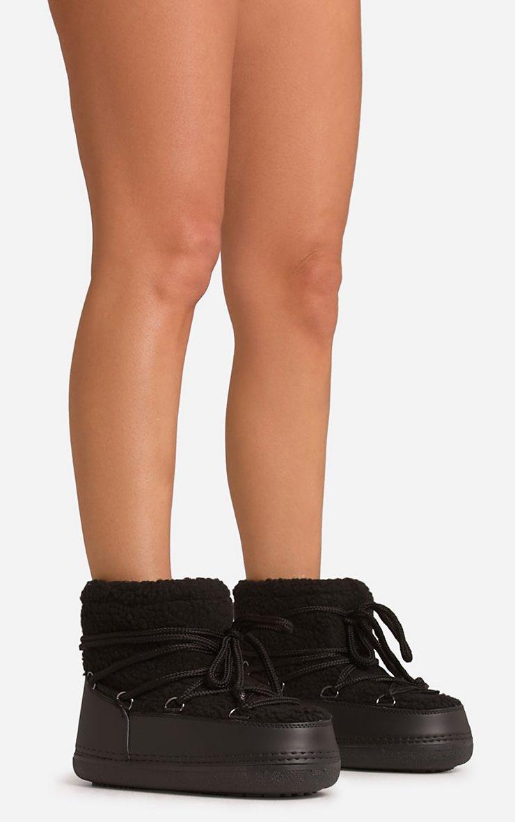 Milana Lace Up Ankle Puffa Boot In Black Faux Shearling