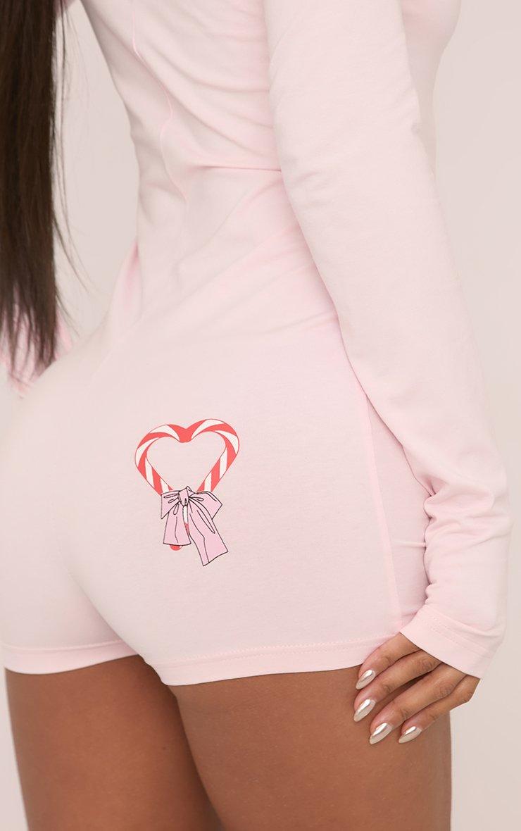 Long Sleeve Button Front Candy Cane Print Back Romper In Pink