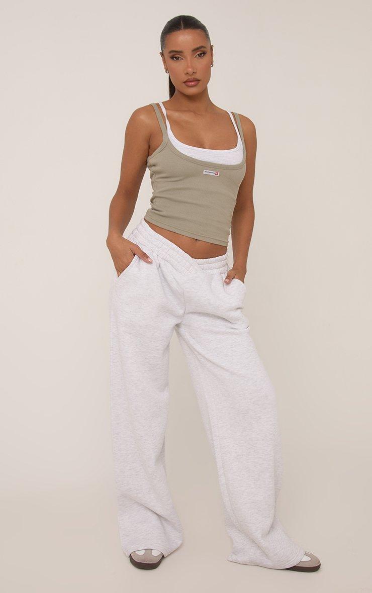 Crossover Waistband Wide Leg Joggers In Grey Marl