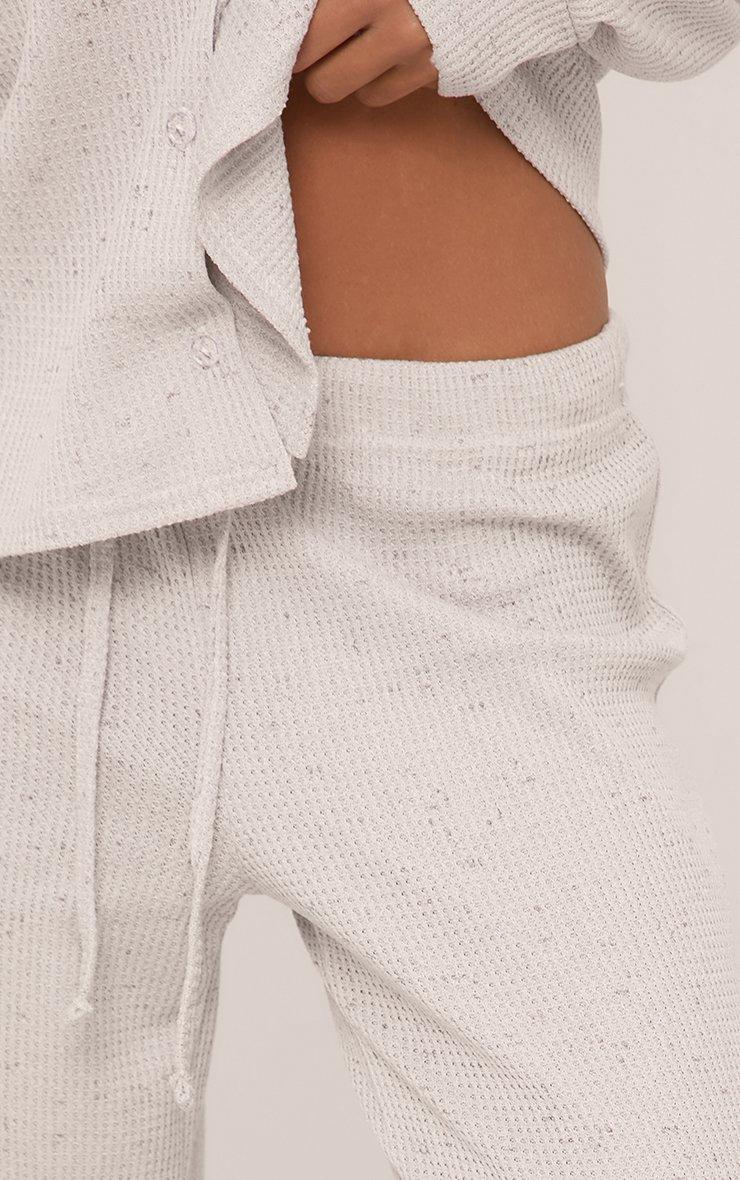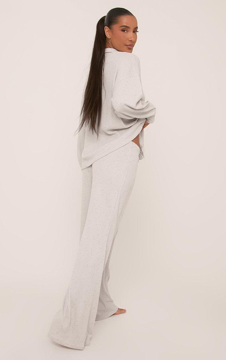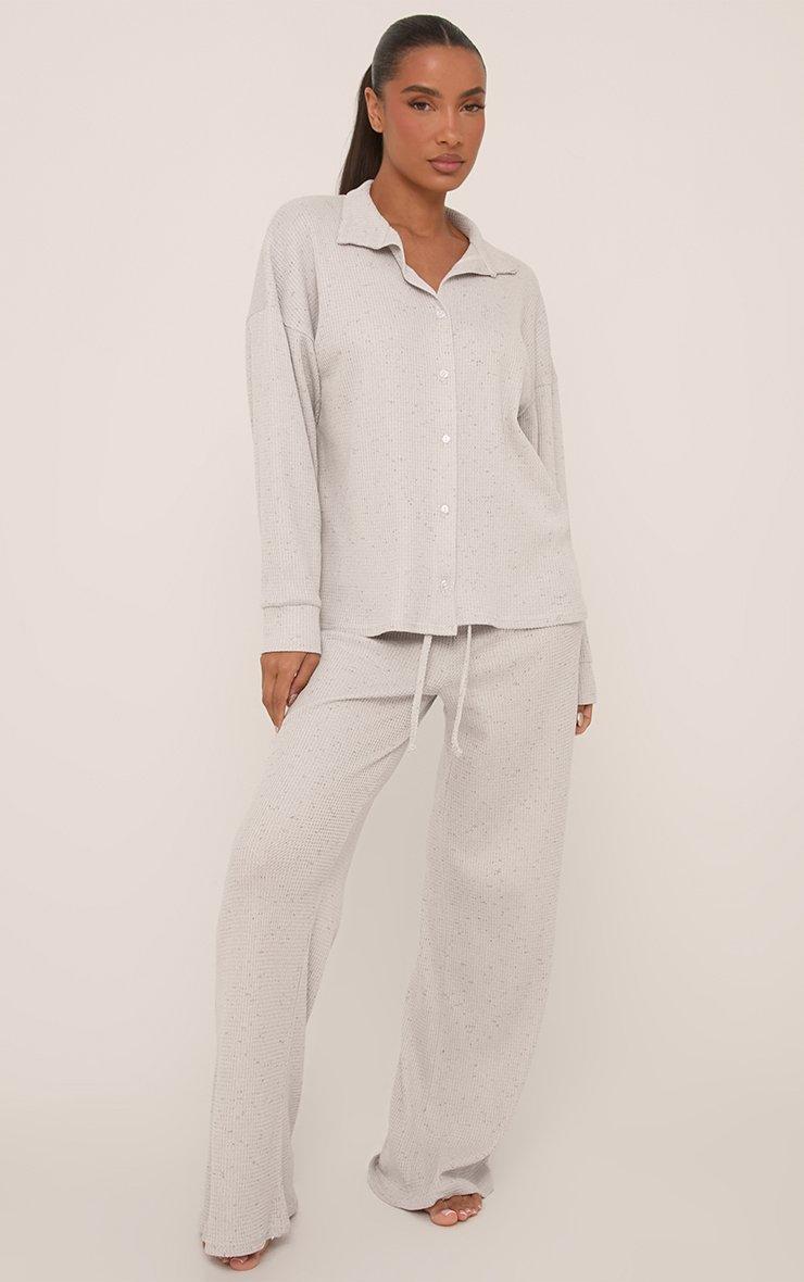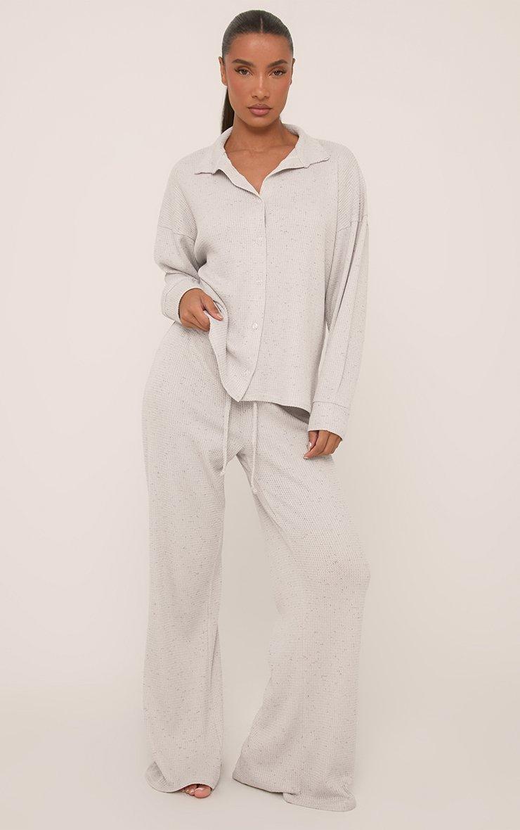 Drawstring Waist Wide Leg Pyjama Trousers In Grey Waffle