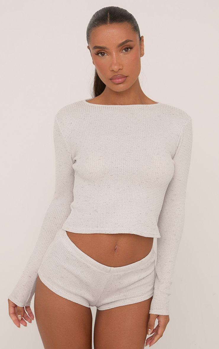Low Rise Micro Pyjama Short In Grey Waffle