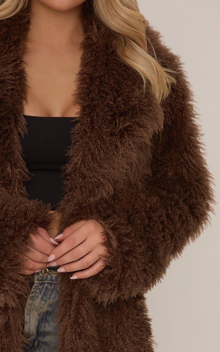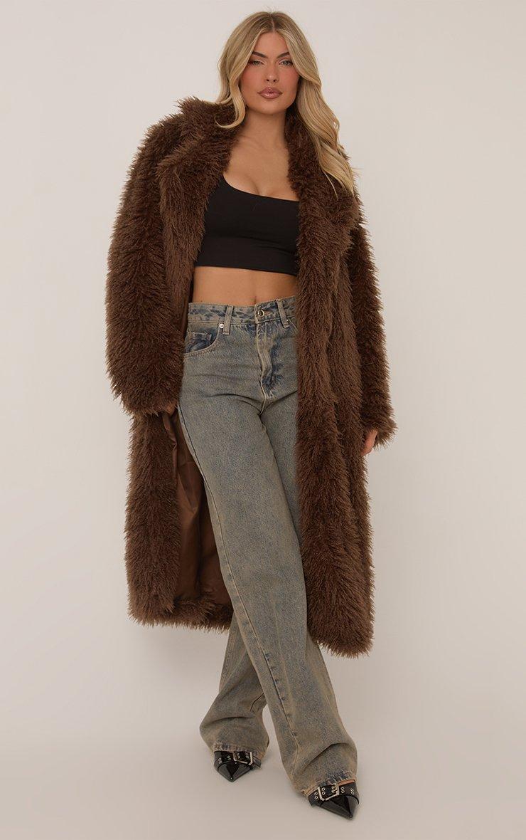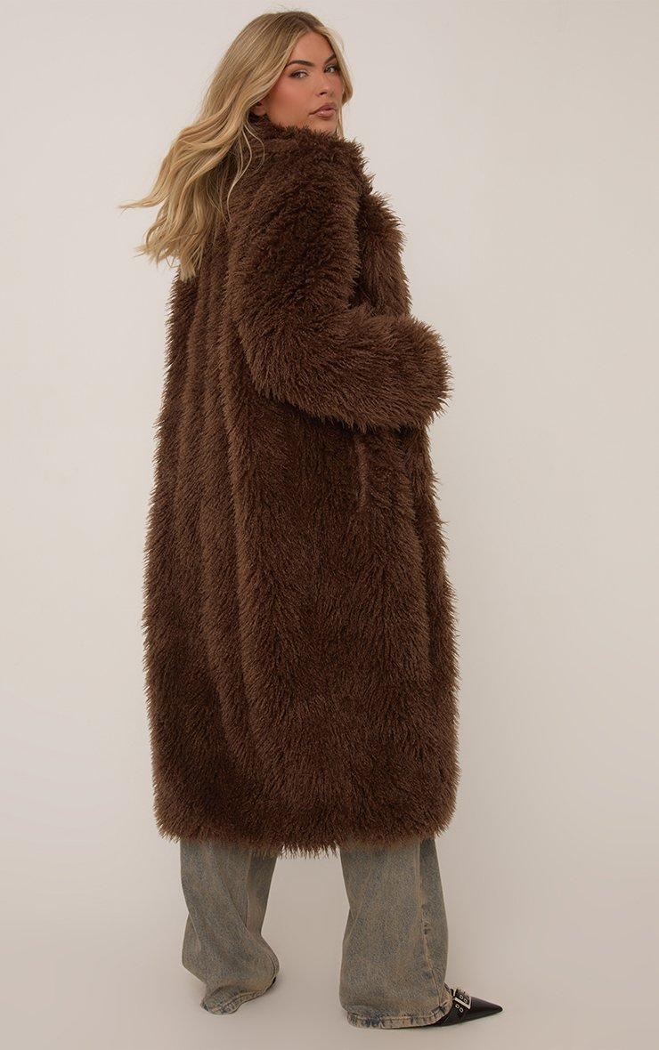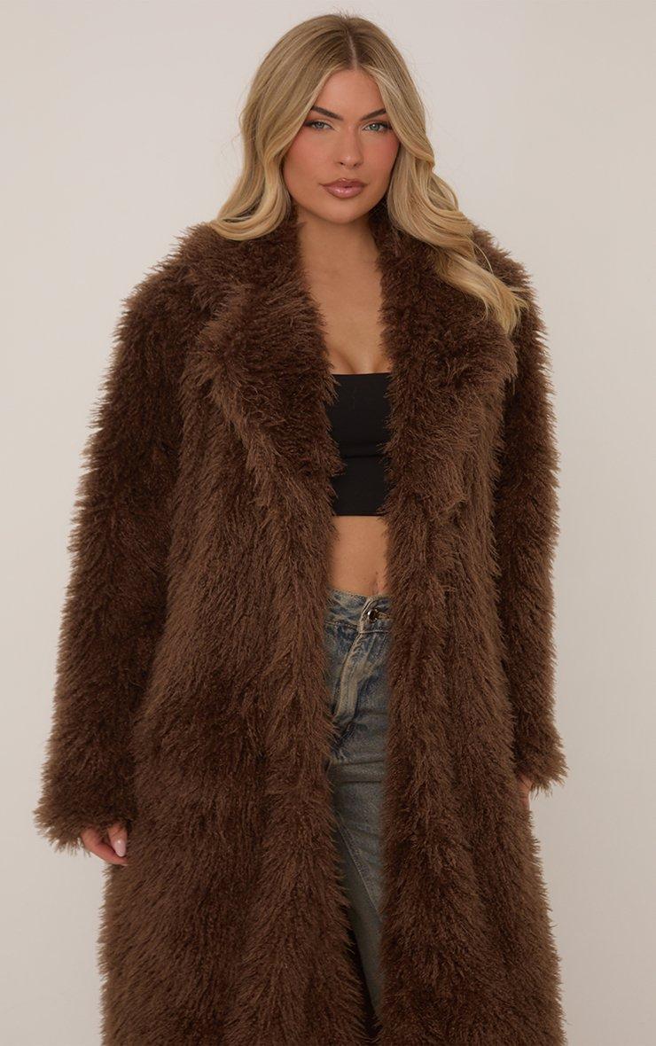 Maxi Length Coat In Brown Shaggy Faux Fur