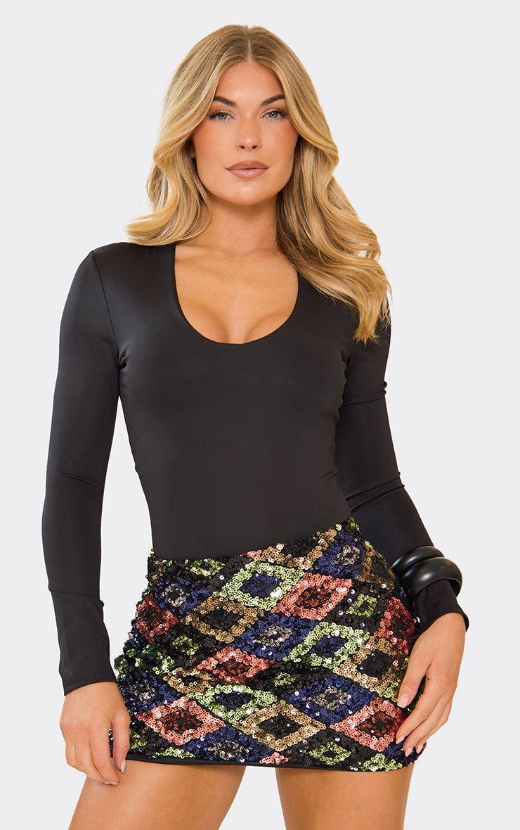 Night-out plans call for bold, it-girl minis. Featuring multi printed sequin material with low rise fit and detail finishing. Statement-making and fun—style with a fitted top and heels for instant boss-babe vibes, doll.