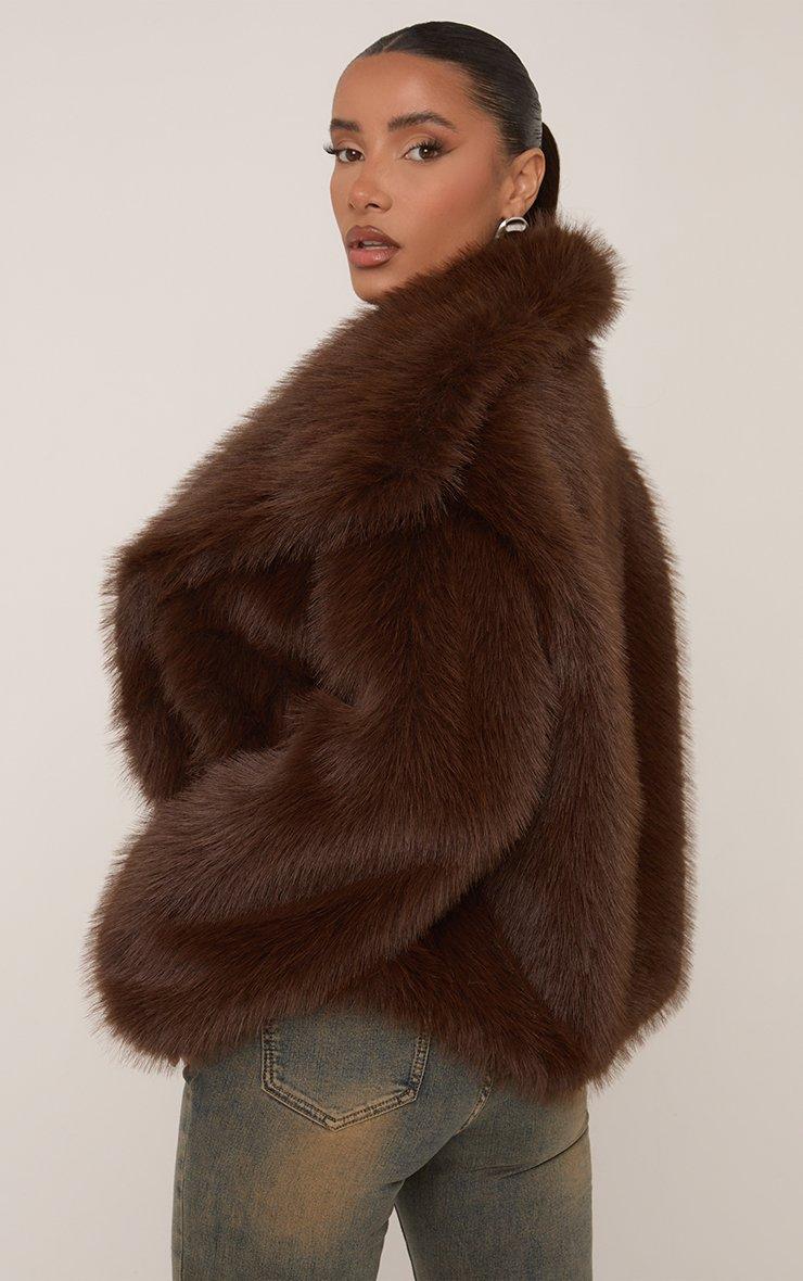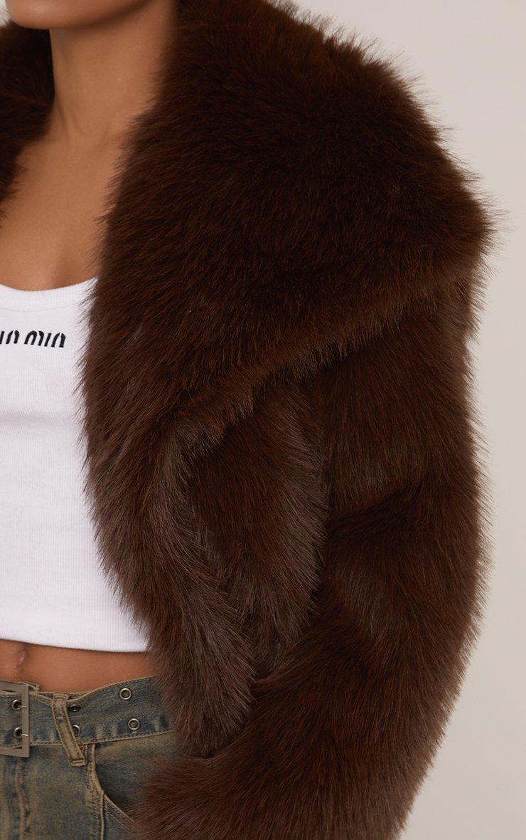 Oversized Collared Cropped Jacket In Chocolate Brown Faux Fur