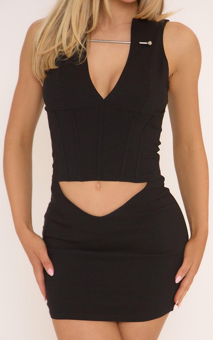 Metal Bar Detail Cut Out Mini Bodycon Dress In Black