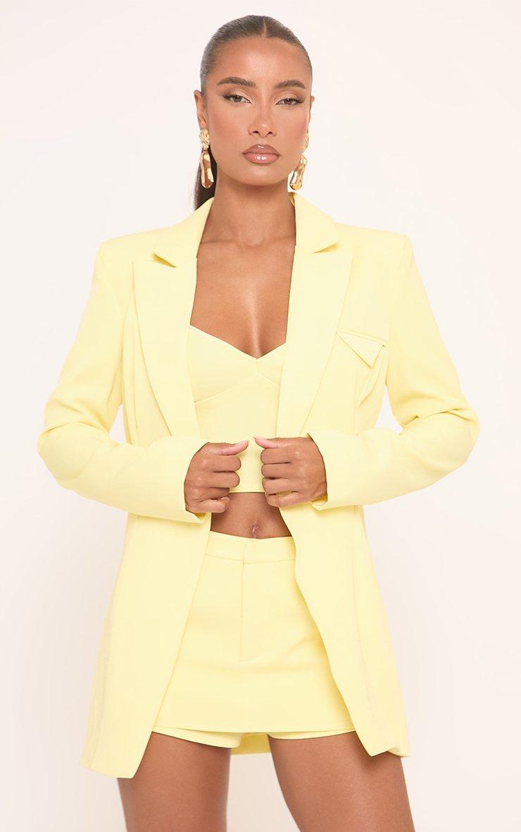 Power moves, doll? Featuring a yellow material with long sleeves and tailored detailing—this blazer is bold, sharp, and ready to brighten up your workwear or night-out looks. Chic with serious attitude.